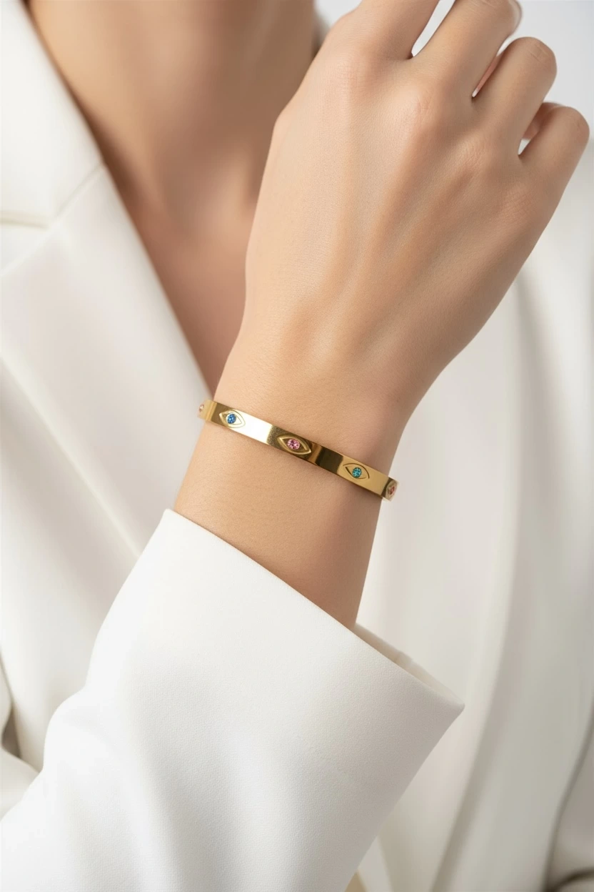 C Model Renkli Göz Gold Altın Kaplama Bileklik