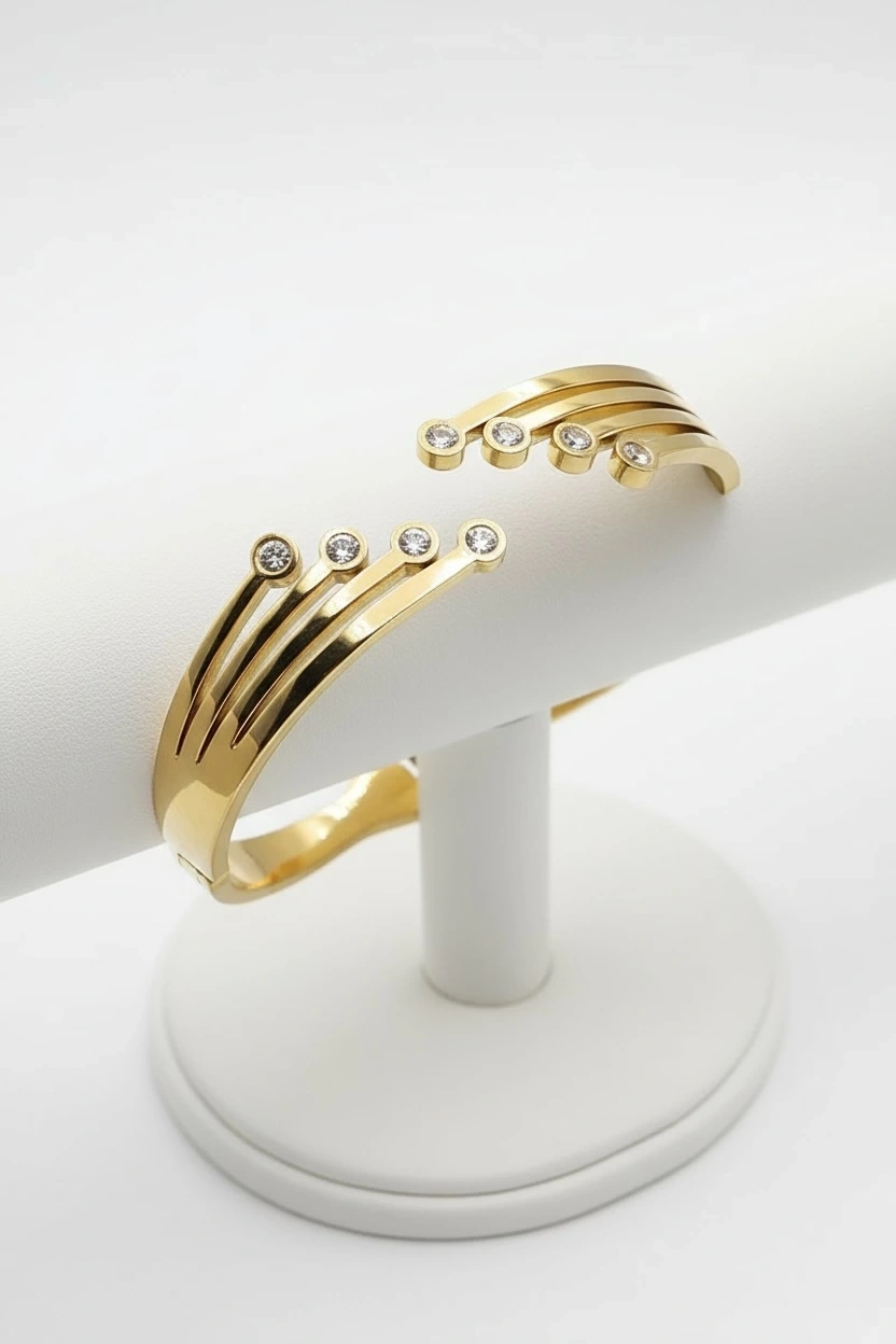 Zikzak Model Kalın Taş Detay Gold Altın Kaplama Bileklik