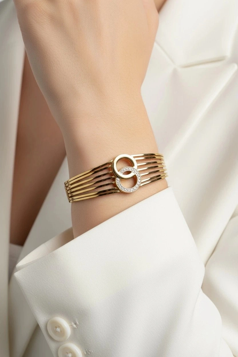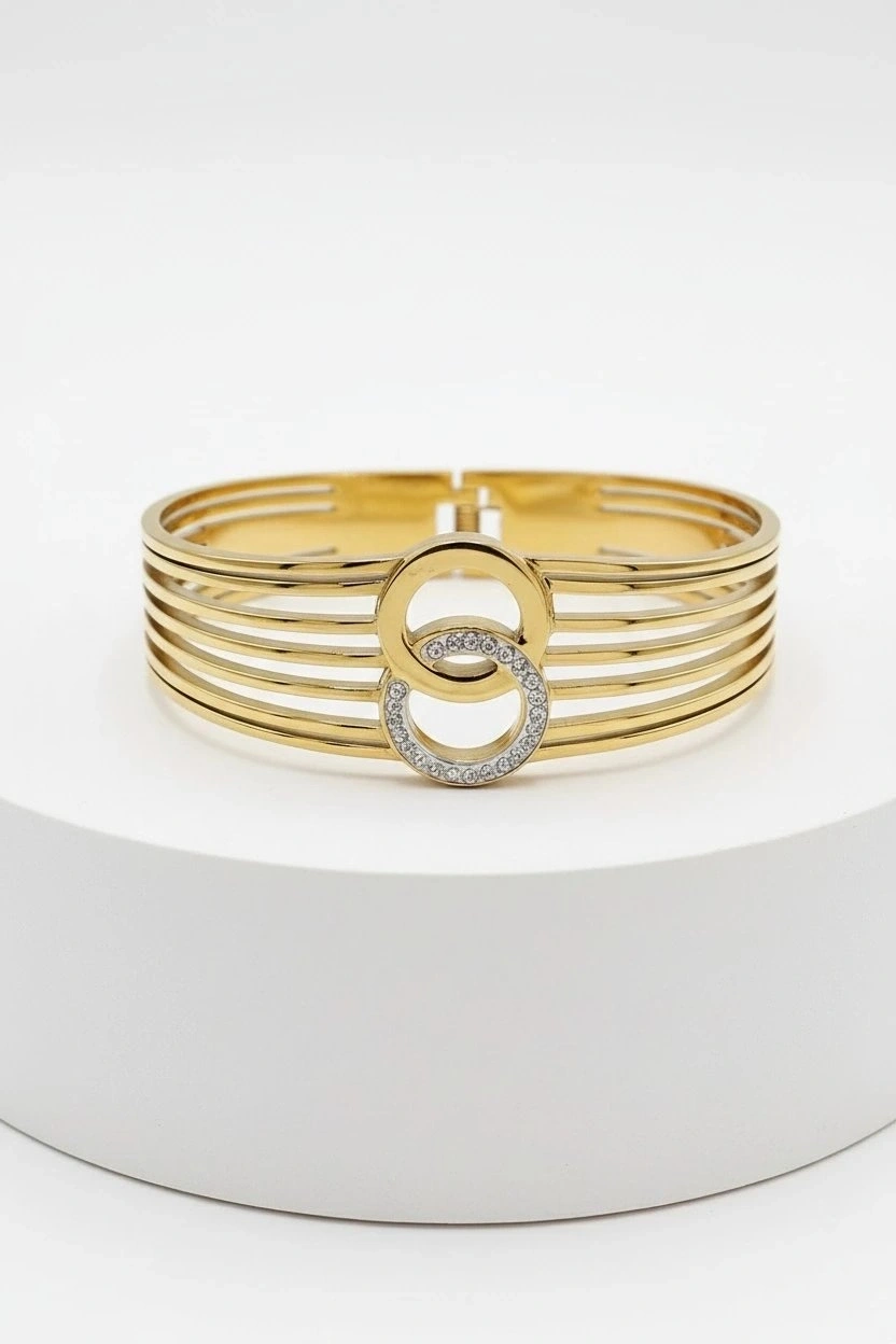 Kalın Çift Halka Model Gold Altın Kaplama Bileklik