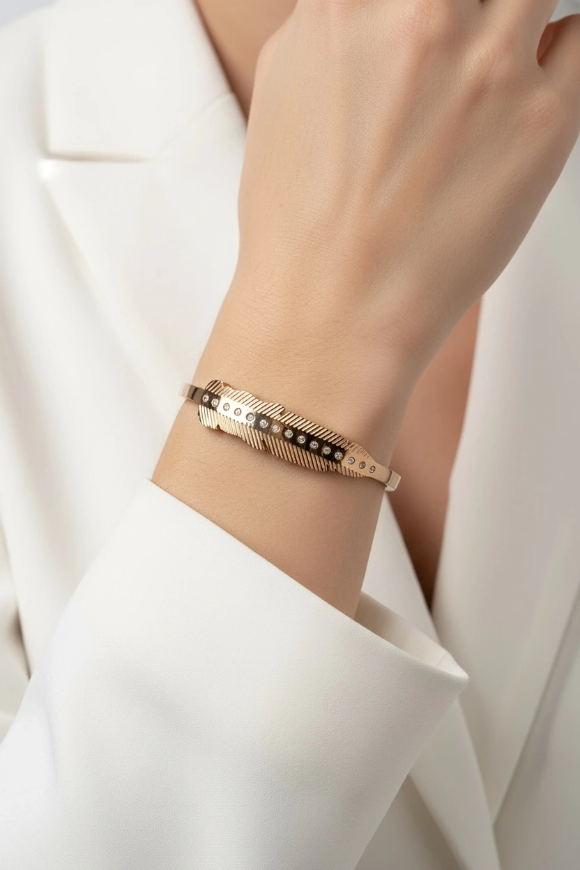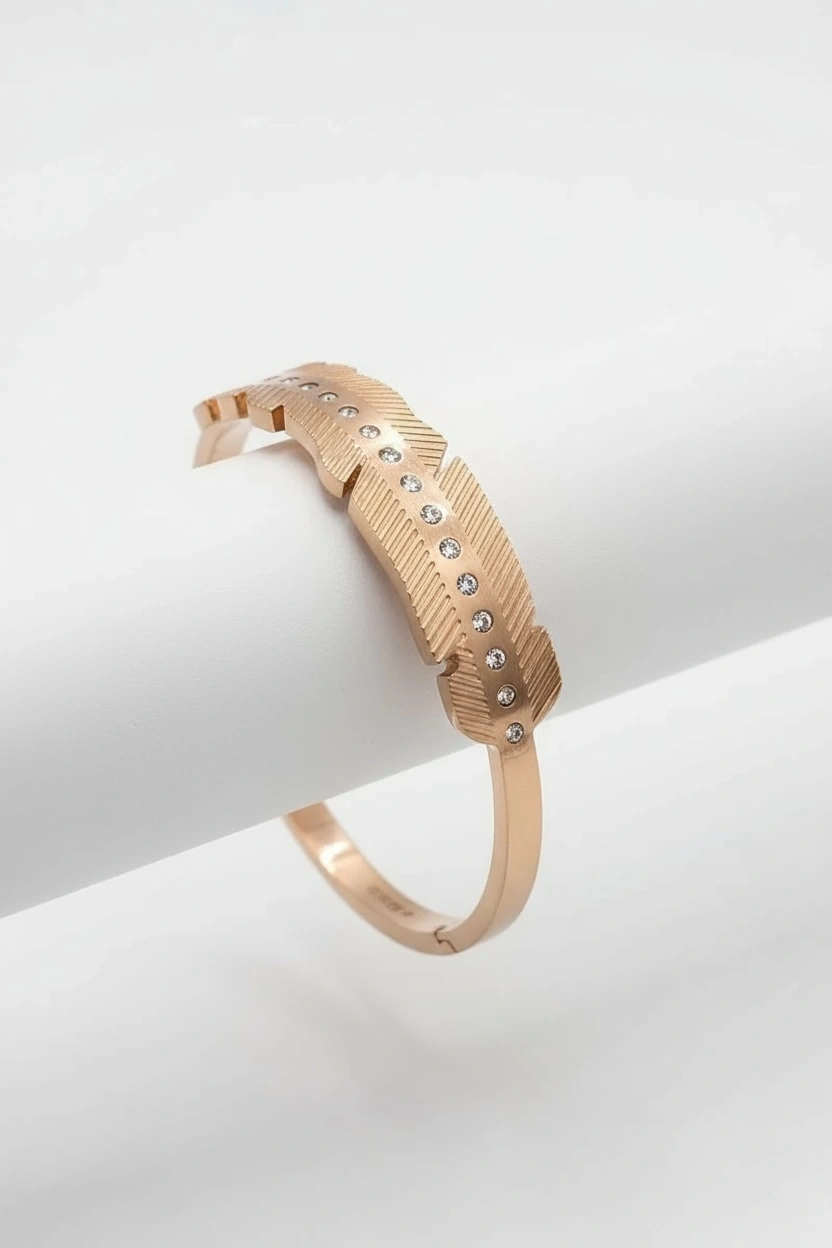 Sıralı Taş Detay Yaprak Model Rose Altın Kaplama Bileklik