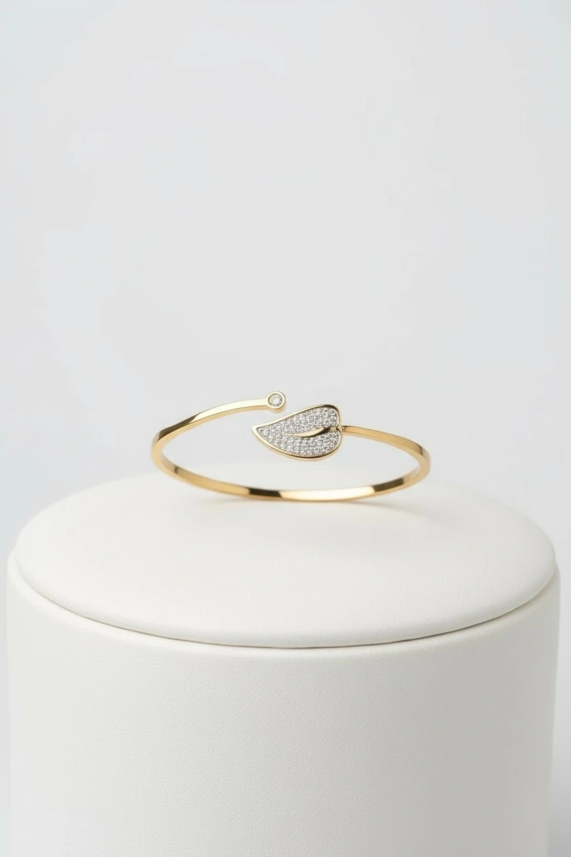 Yaprak Desen Tam Taş Detay Gold Altın Kaplama Bileklik