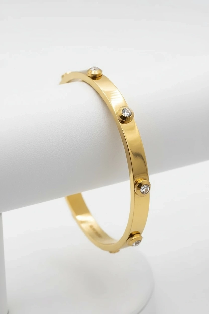 C Model Tam Tur Taş Gold Altın Kaplama Bileklik