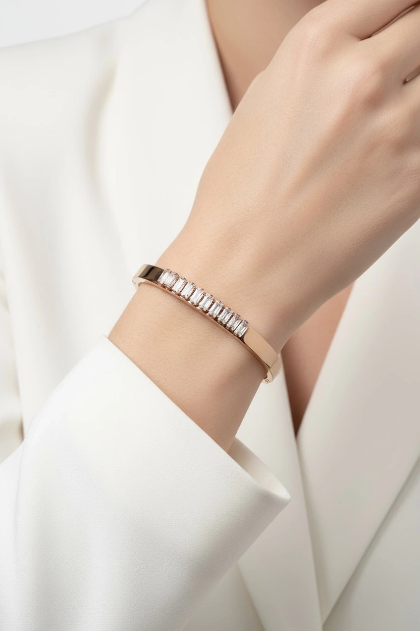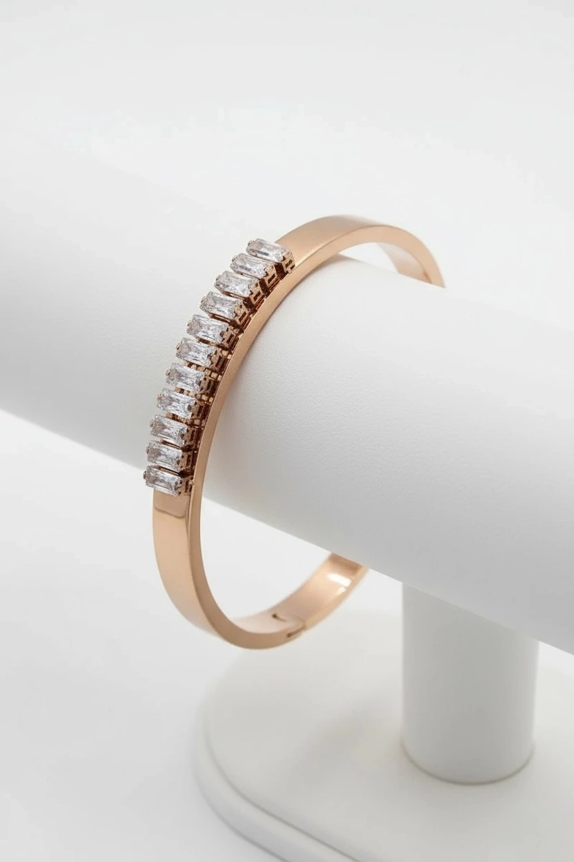 Sıralı Taş Baget Model Rose Altın Kaplama Bileklik