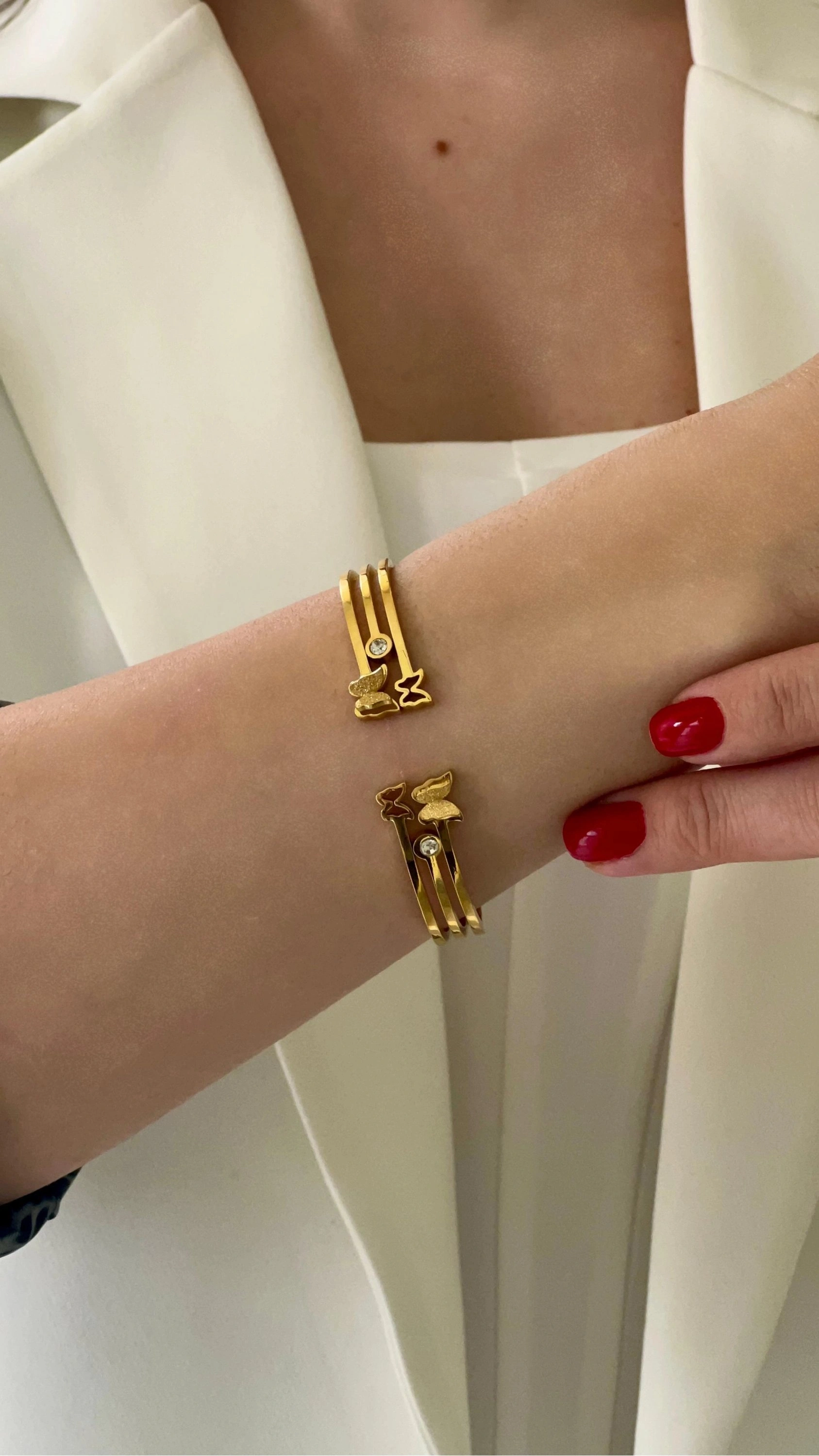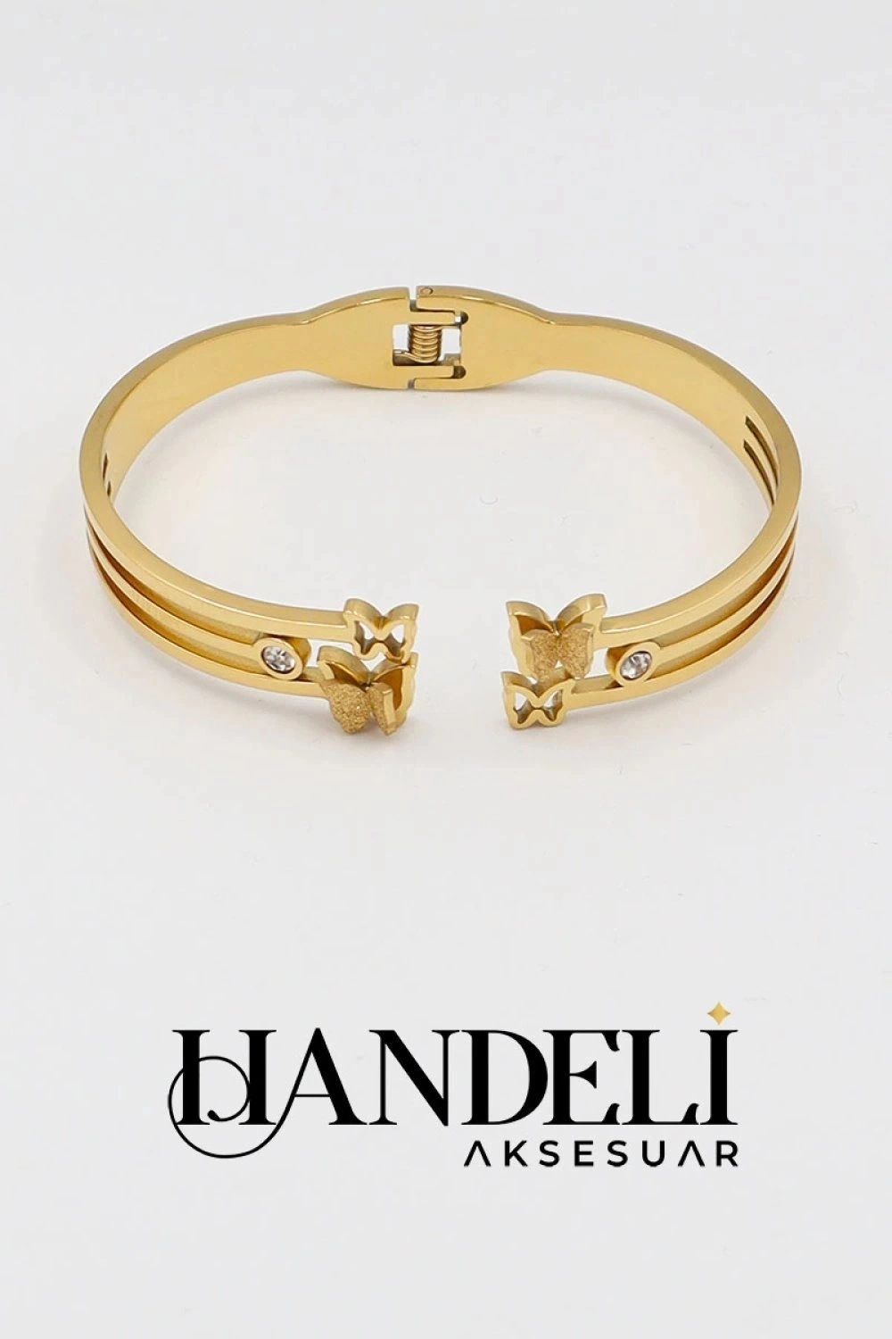Simli Kelebek Model Tek Taş Detay Gold Altın Kaplama Bileklik