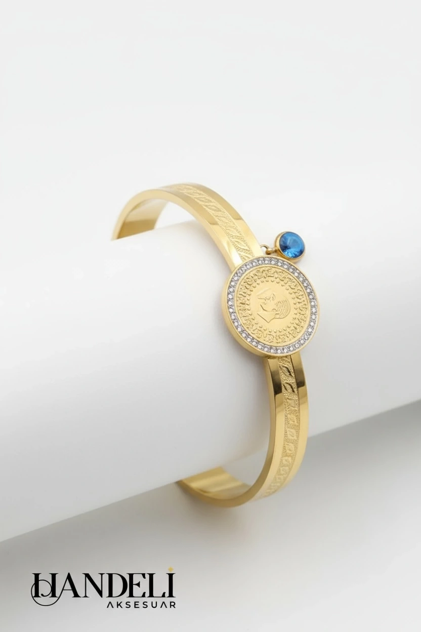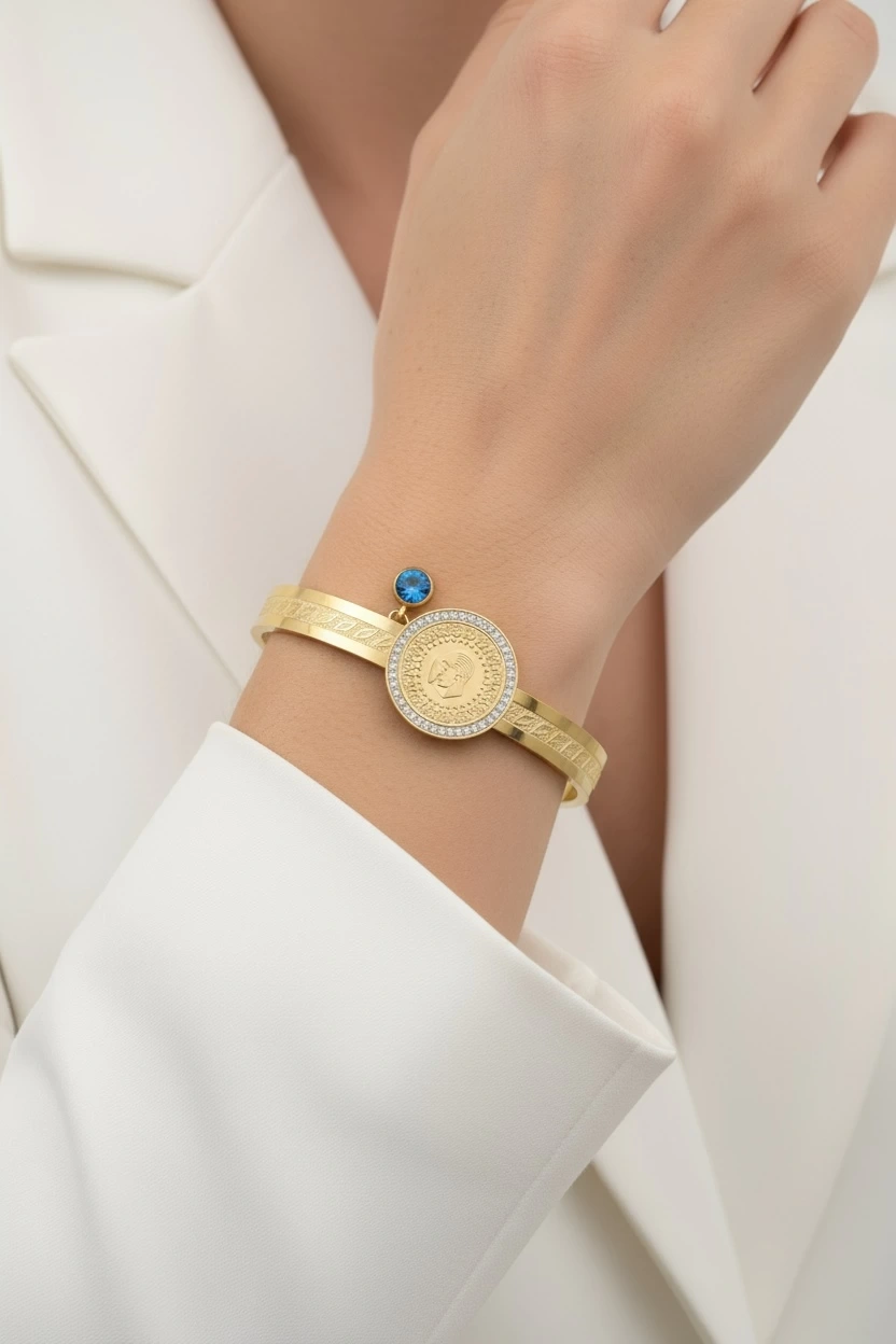 Labirent Çeyrekli Göz Detay Gold Altın Kaplama Bileklik