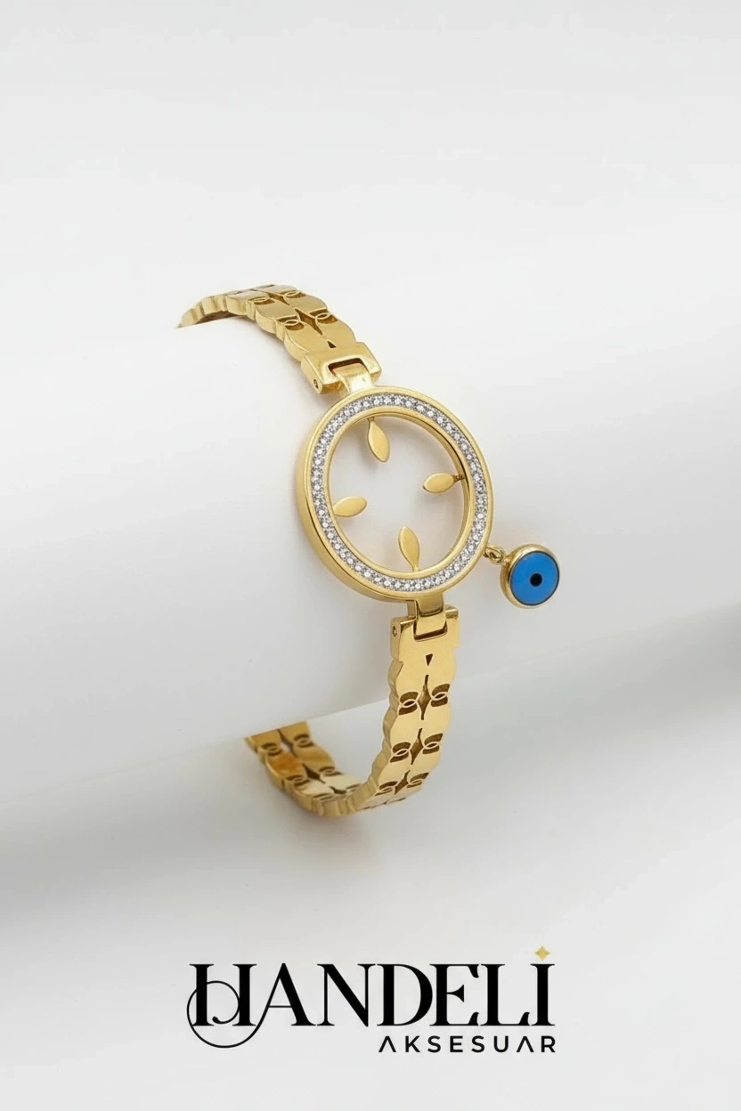 Çeyrek Takmalı Boş Gold Taşlı Kelepçe Altın Kaplama Bileklik