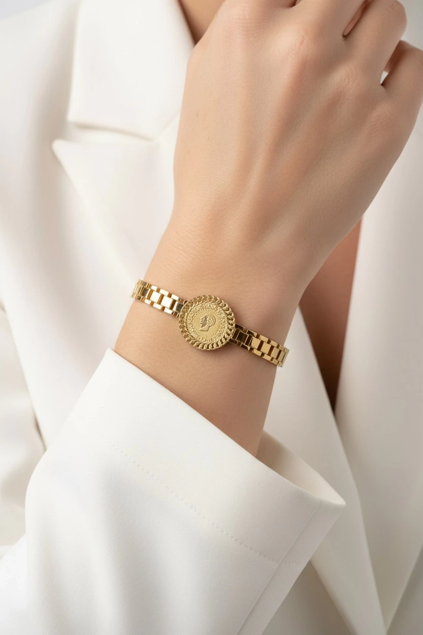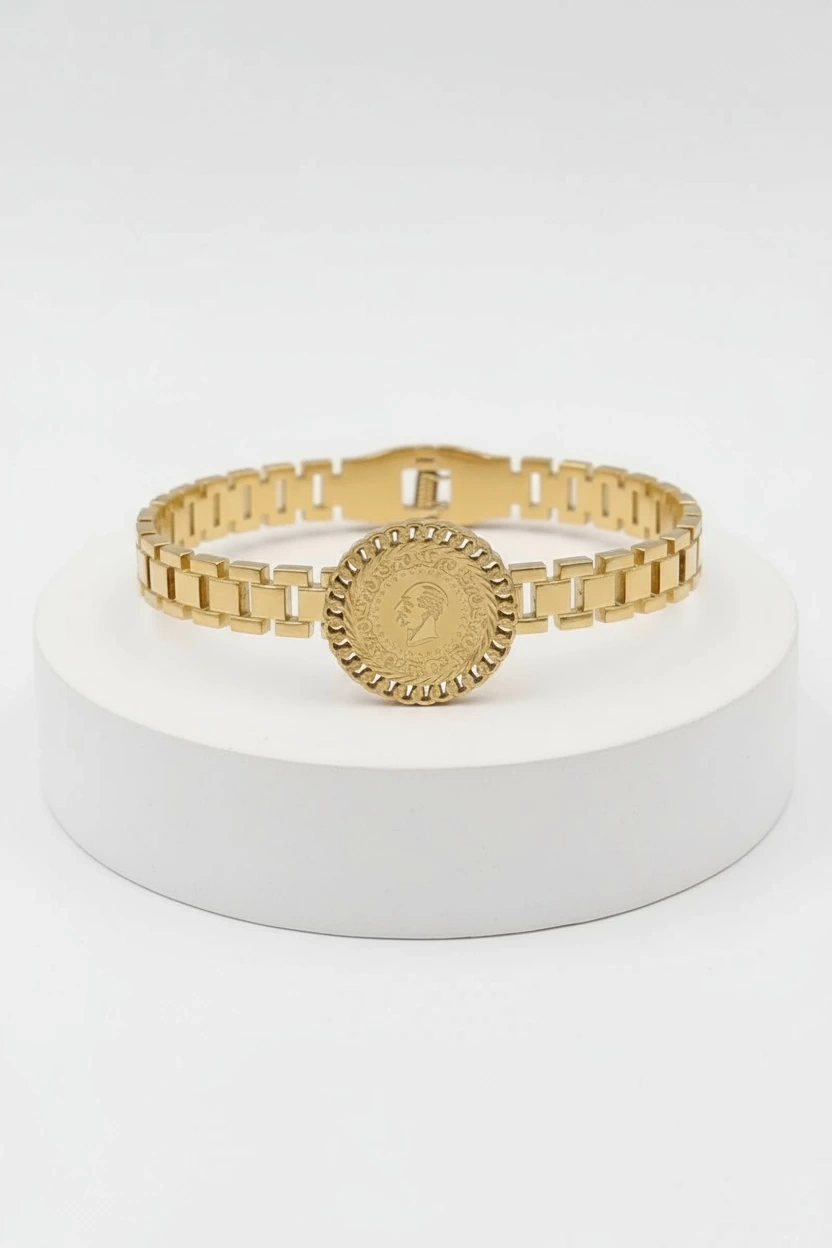Çeyrek Model Kilit Detay Gold Altın Kaplama Bileklik