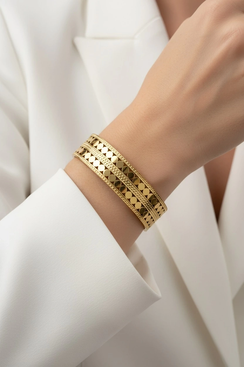 Açık Kordon Pullu Gold Altın Kaplama Bileklik
