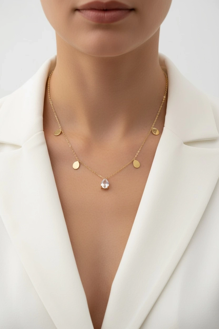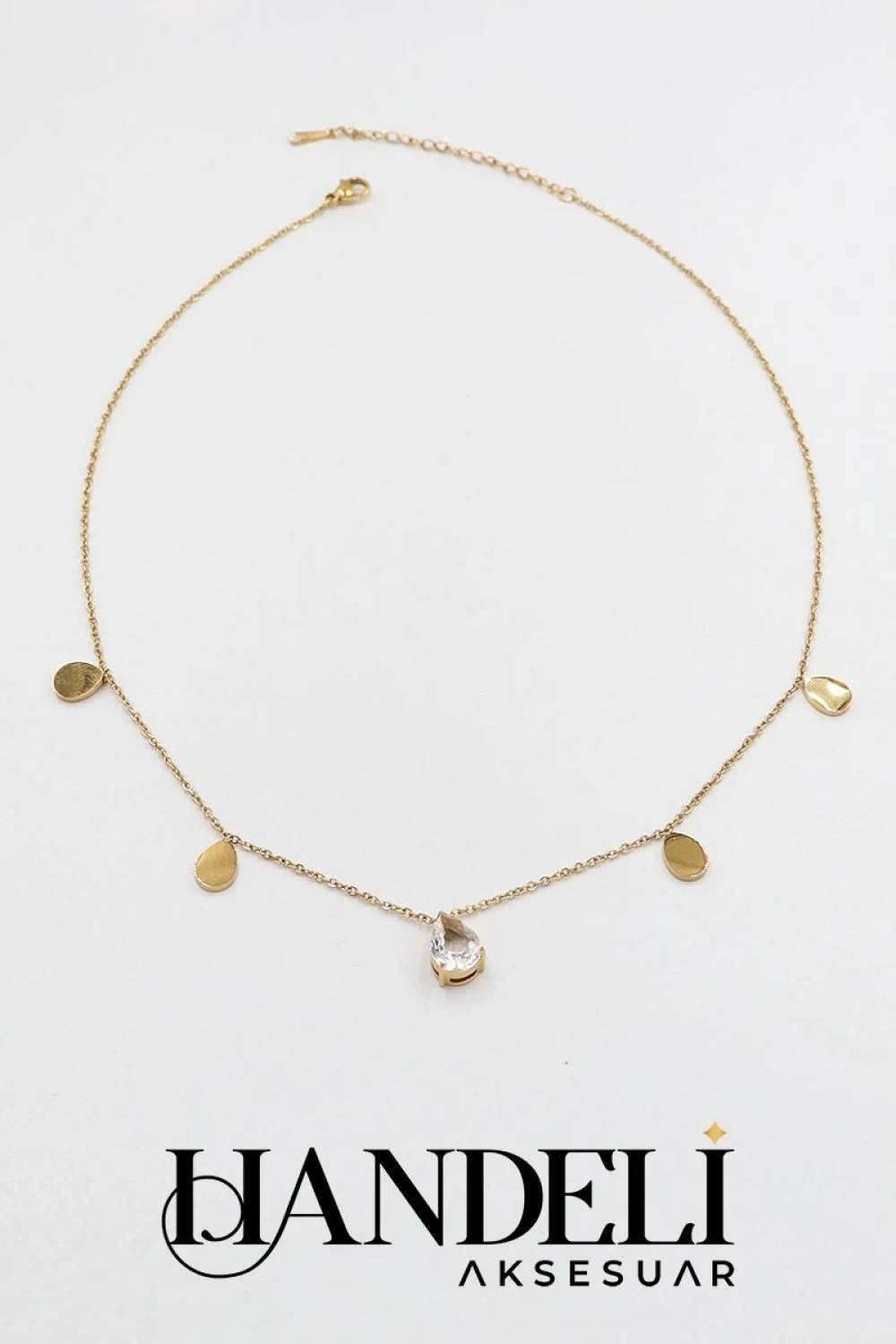 Damla Taş Detay Gold Altın Kaplama Çelik Kolye