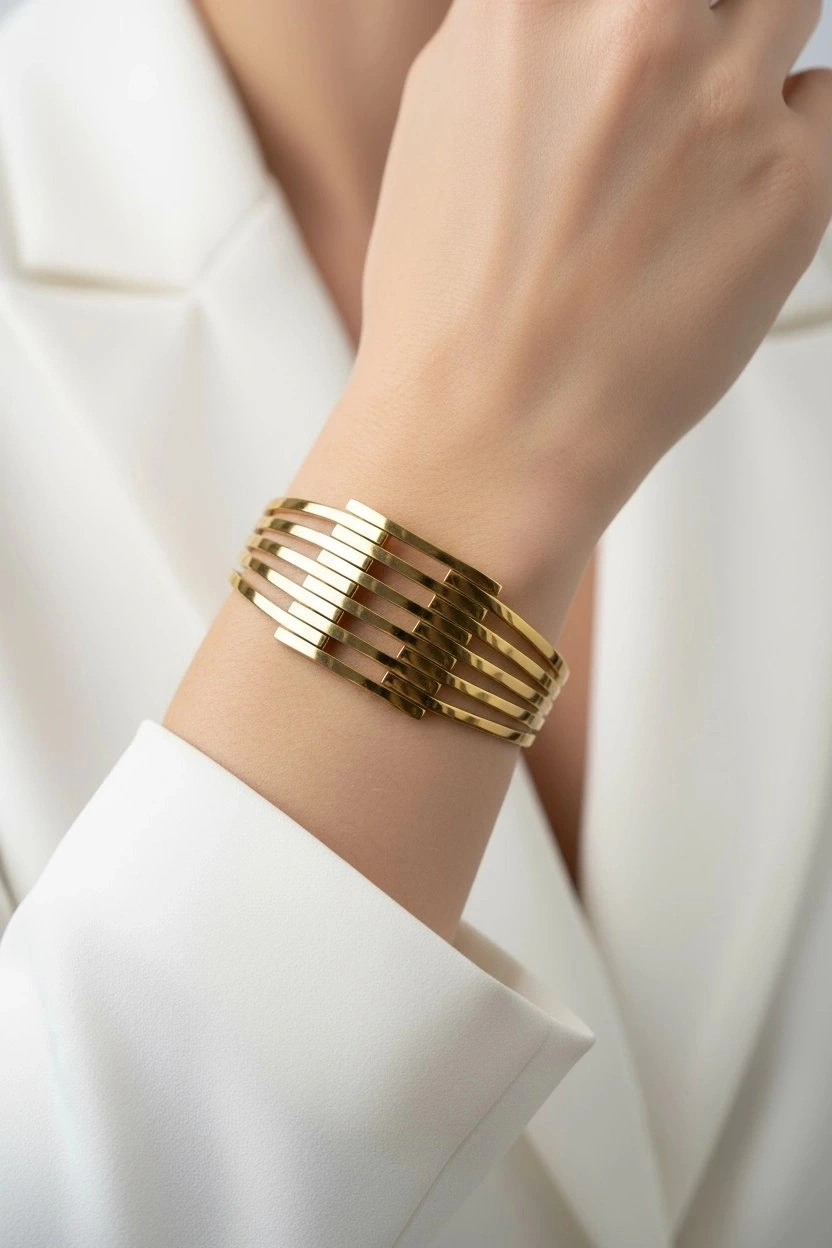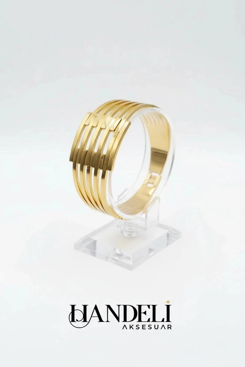 Altı Sıra Kalın Kaburga Gold Altın Kaplama Bileklik