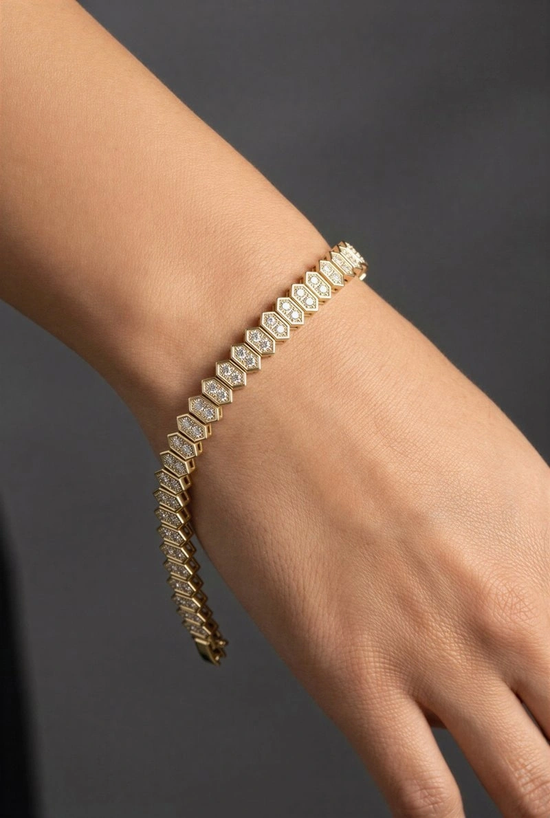 Altıgen Model Taş Detay Gold Altın Kaplama Bileklik