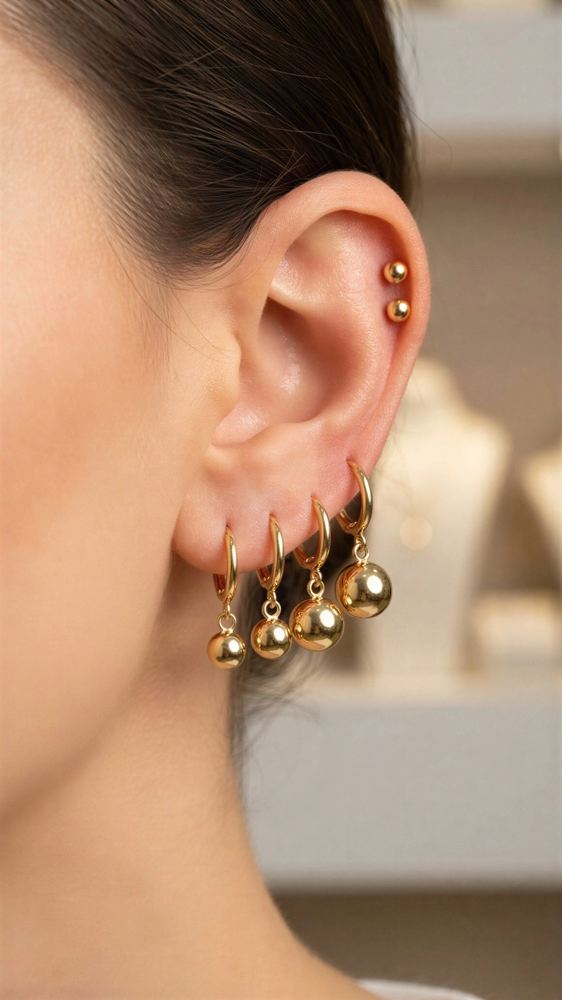Altılı Dorika Model Gold Altın Kaplama Çoklu Küpe