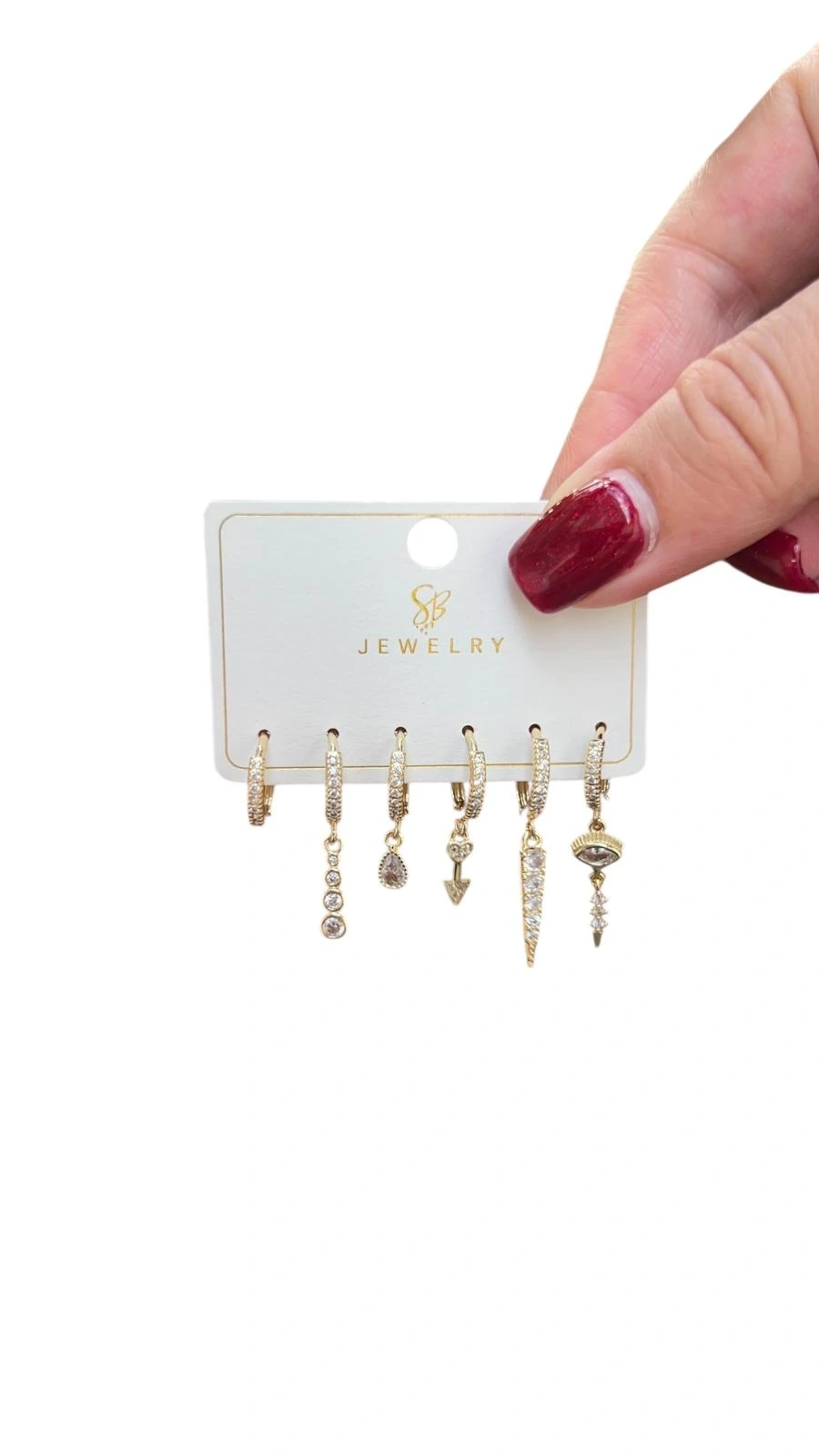 Altılı Taşlı Sarkıt Göz Model Gold Altın Kaplama Küpe