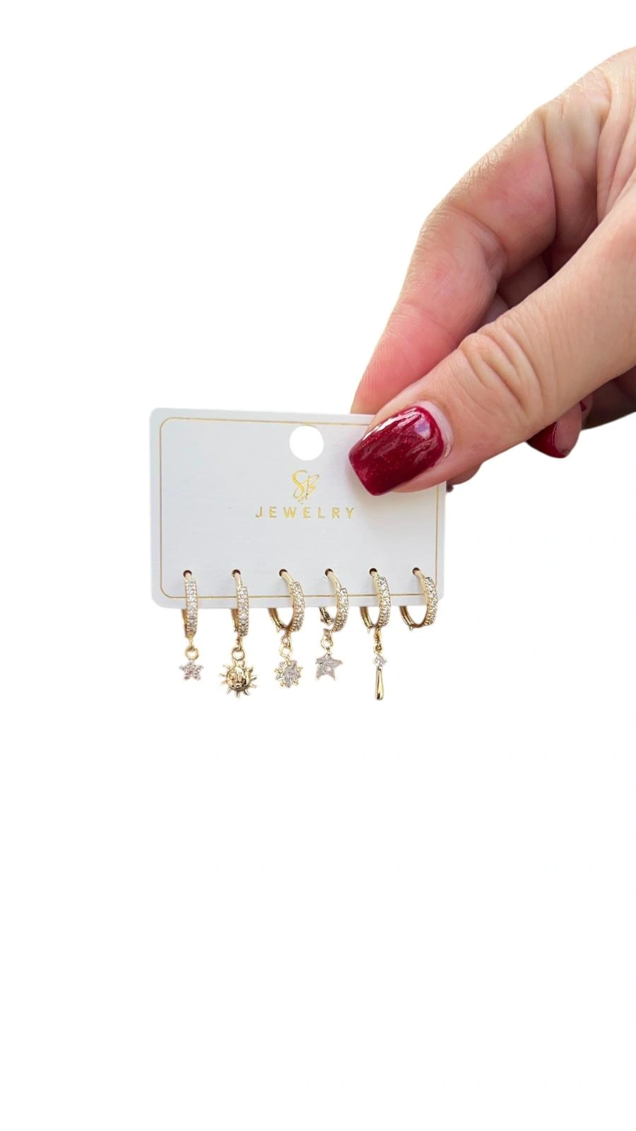 Altılı Taşlı Güneş Model Gold Altın Kaplama Küpe