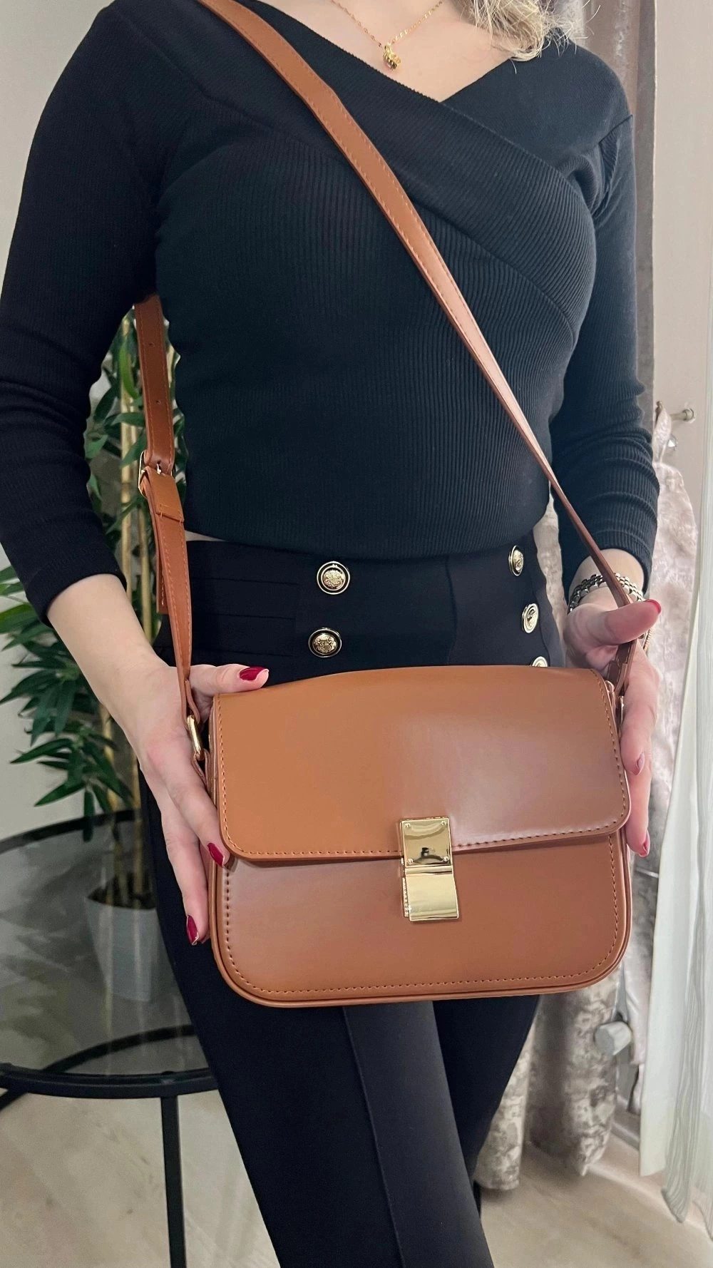 Anjeli Model Taba Renk Deri Kol Çantası