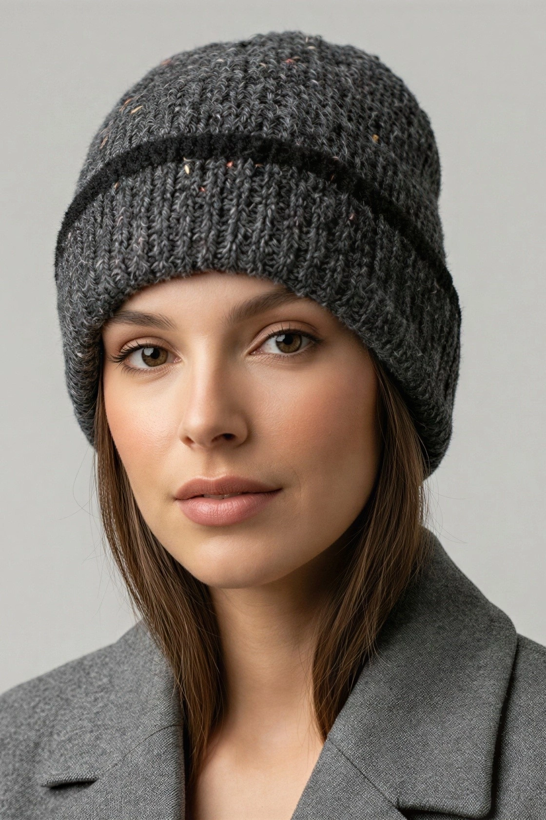 Antrasit Renk Siyah Çizgi Detay Kadın Bere