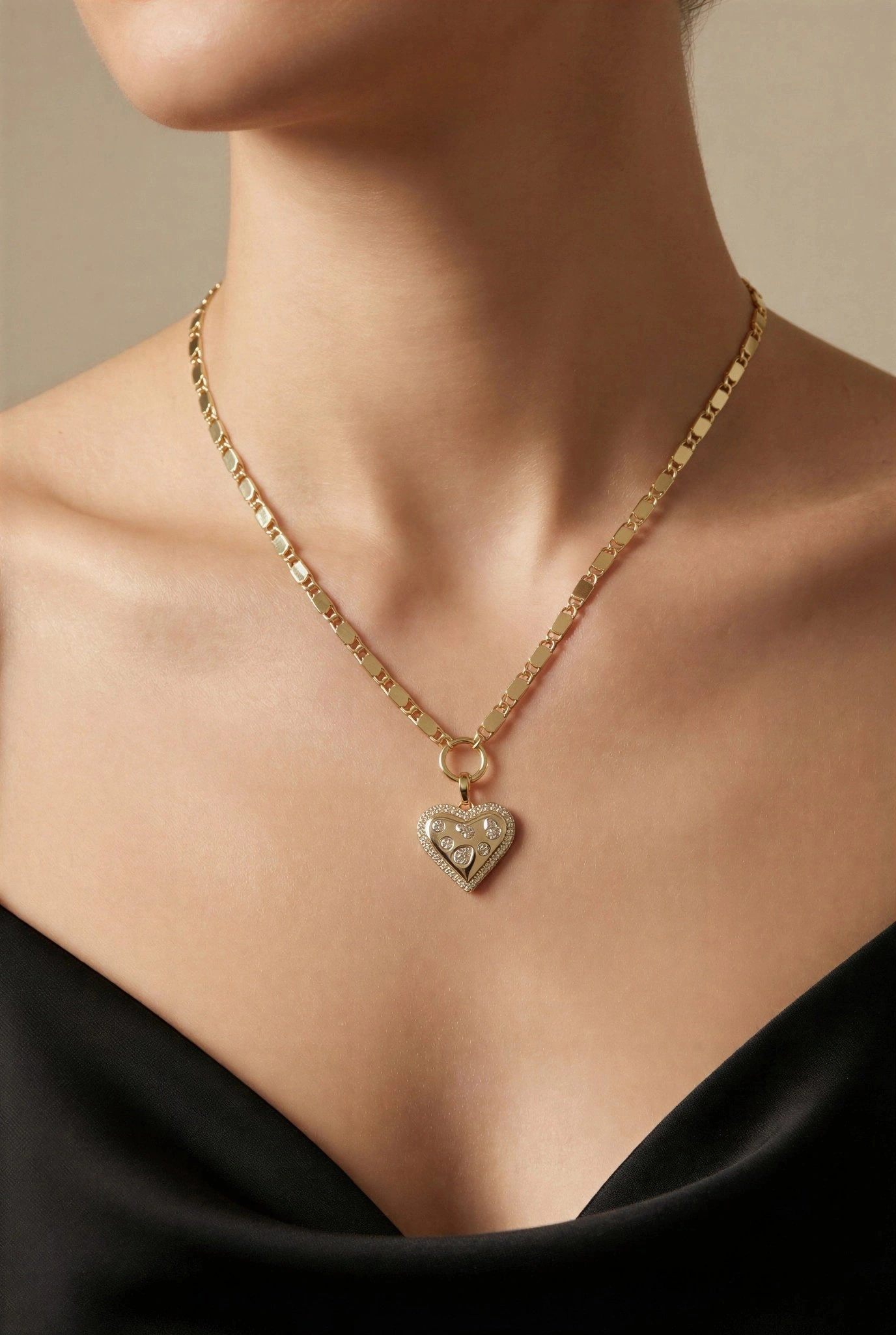 Arpa Zincir Taşlı Kalp Model Gold Altın Kaplama Kolye