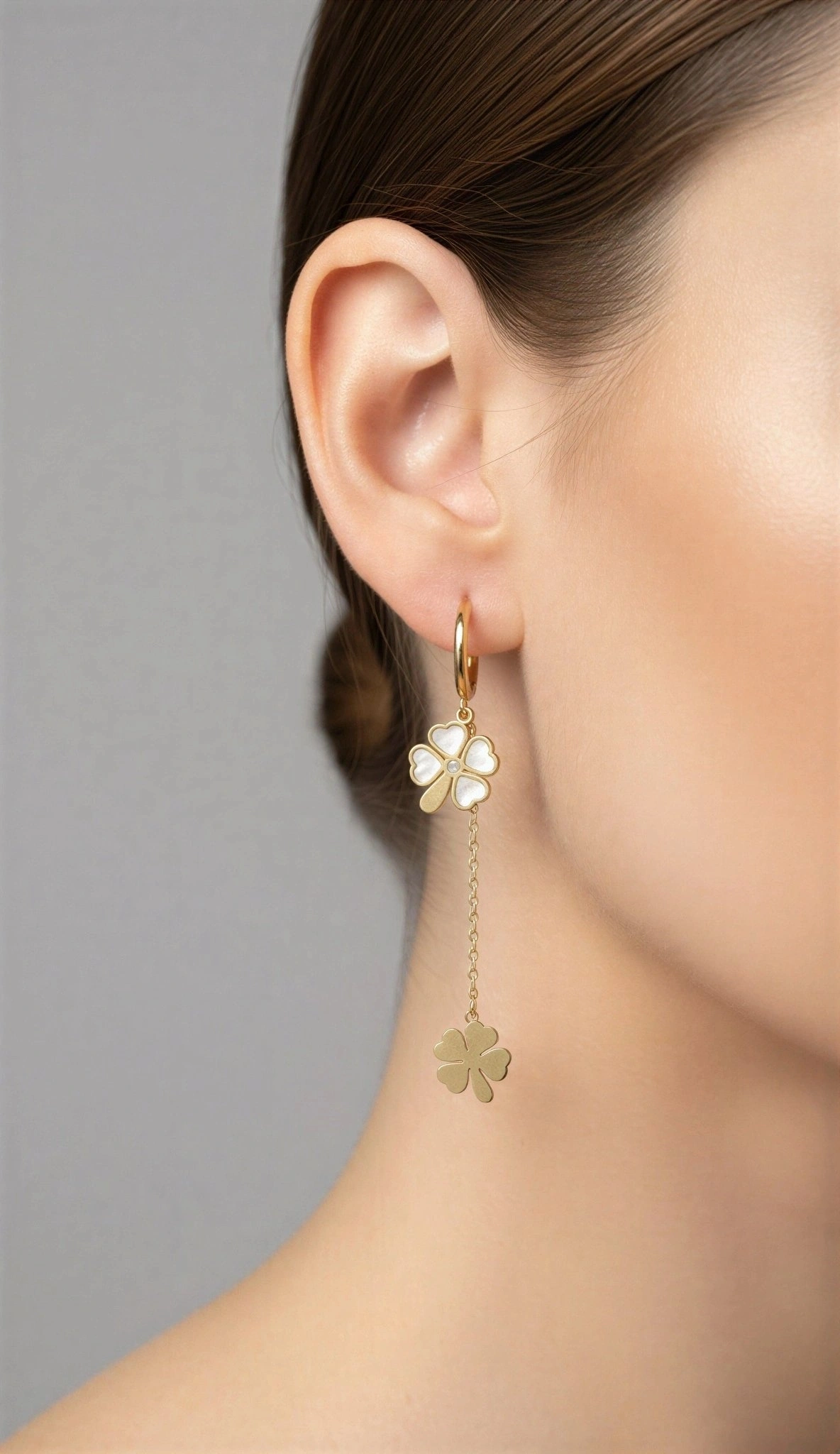 Sarkıt Model Sedef Yonca Gold Altın Kaplama Çelik Küpe