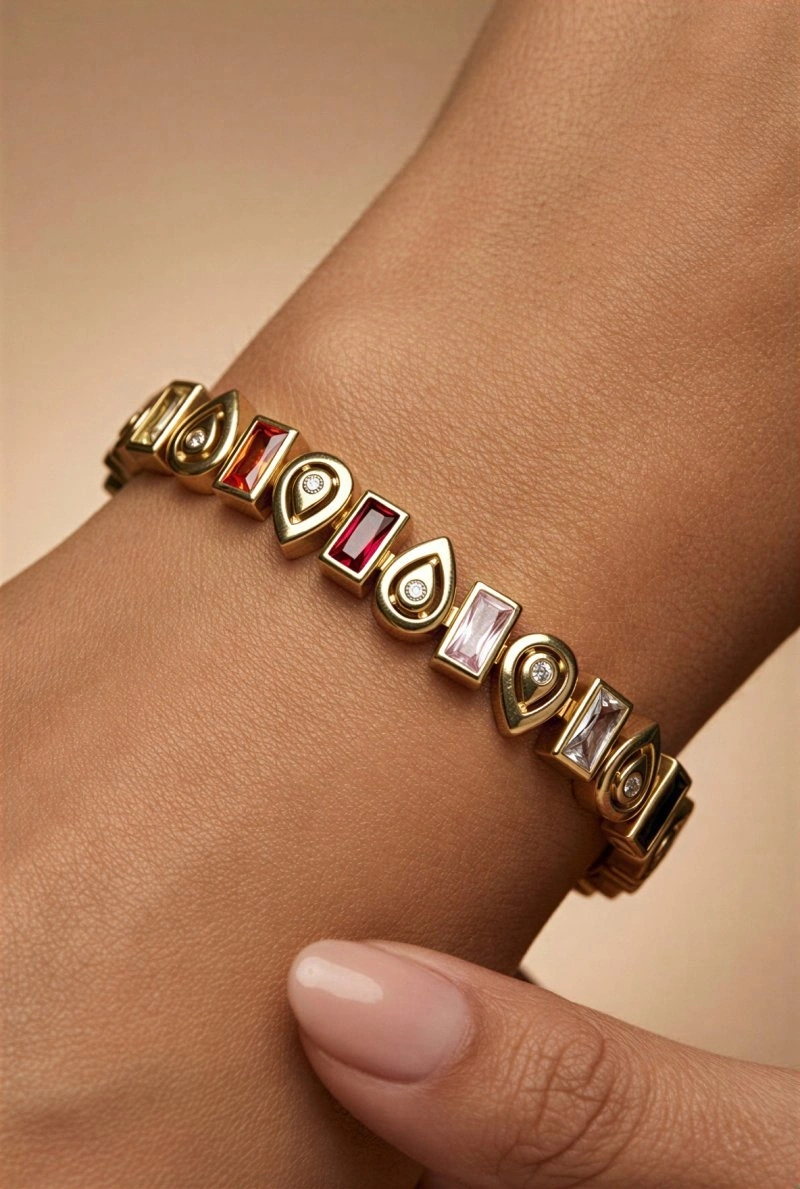 Asimetrik Renkli Damla Model Gold Altın Kaplama Bileklik