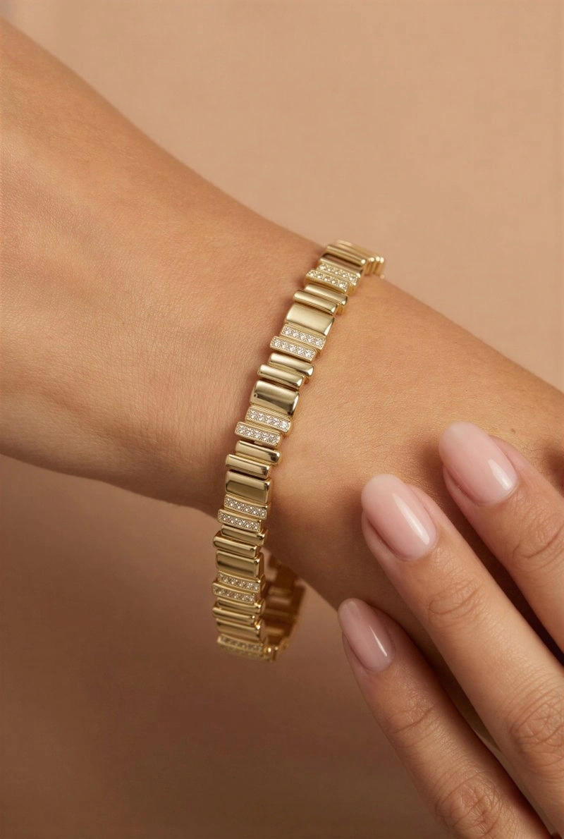 Asimetrik Taş Detay Gold Altın Kaplama Bileklik