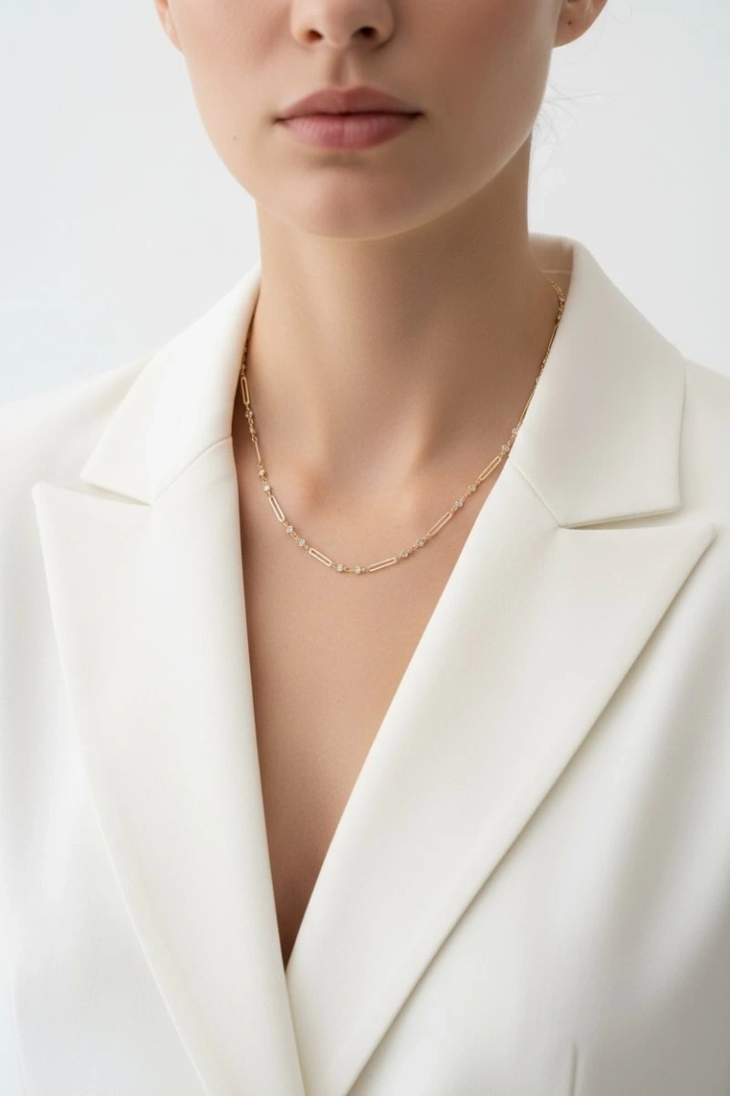 Ataç Zincir Detay Taş Model Gold Altın Kaplama Kolye