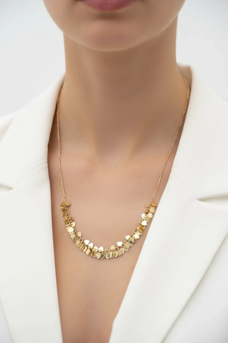 Ataç Zincir Sallantılı Kalp Model Gold Altın Kaplama Kolye