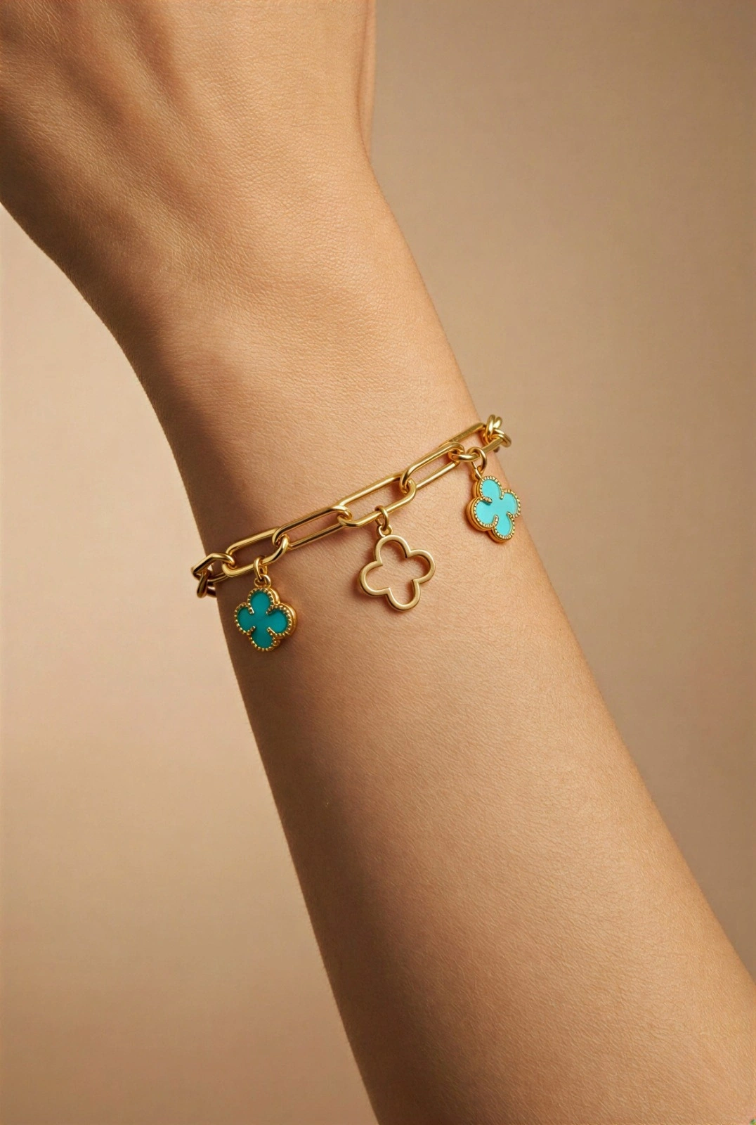 Ataç Zincir Sallantılı Mavi Yonca Detay Gold Altın Kaplama Bileklik