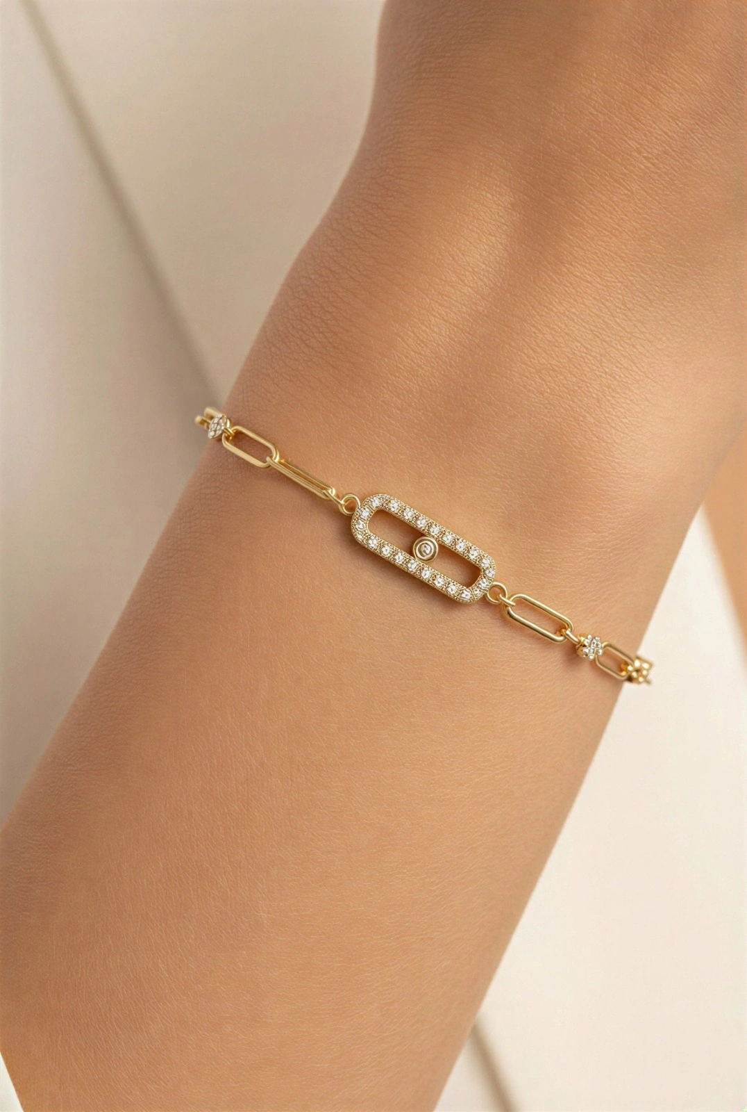 Ataç Zincir Tek Taş Detay Gold Altın Kaplama Bileklik