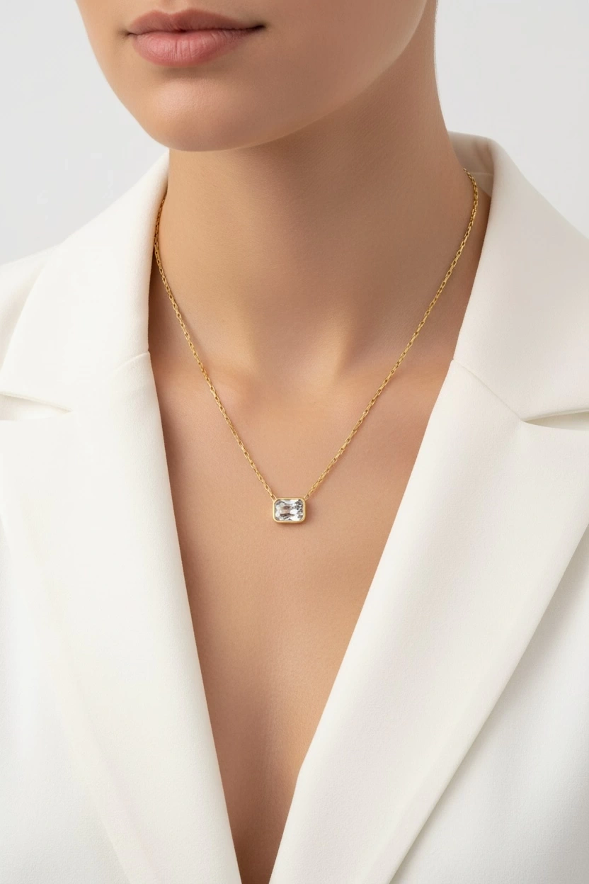 Baget Model Kristal Taş Gold Altın Kaplama Kolye