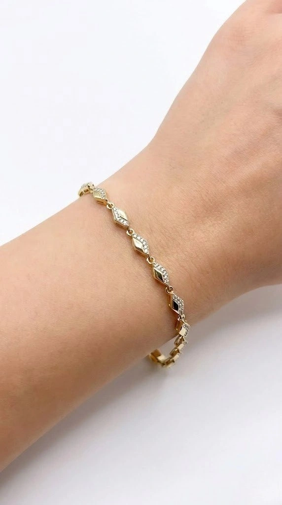 Baklava Model Taş Detay Gold Altın Kaplama Bileklik