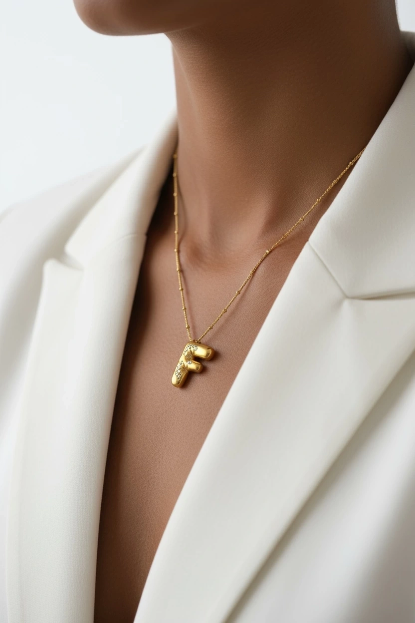 Balon Model F Harf Detay Gold Altın Kaplama Çelik Kolye
