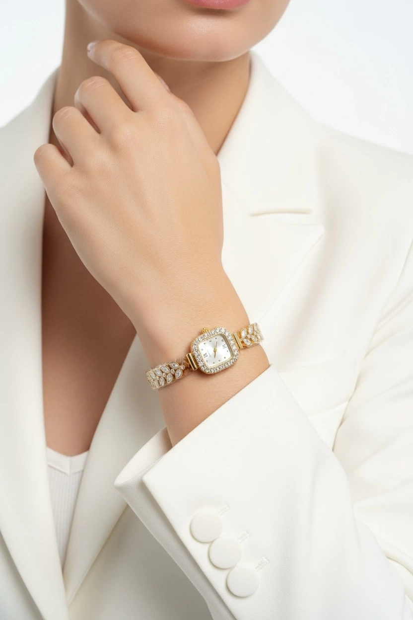 Başak Model Gold İçi Beyaz Detay Kadın Kol Saati