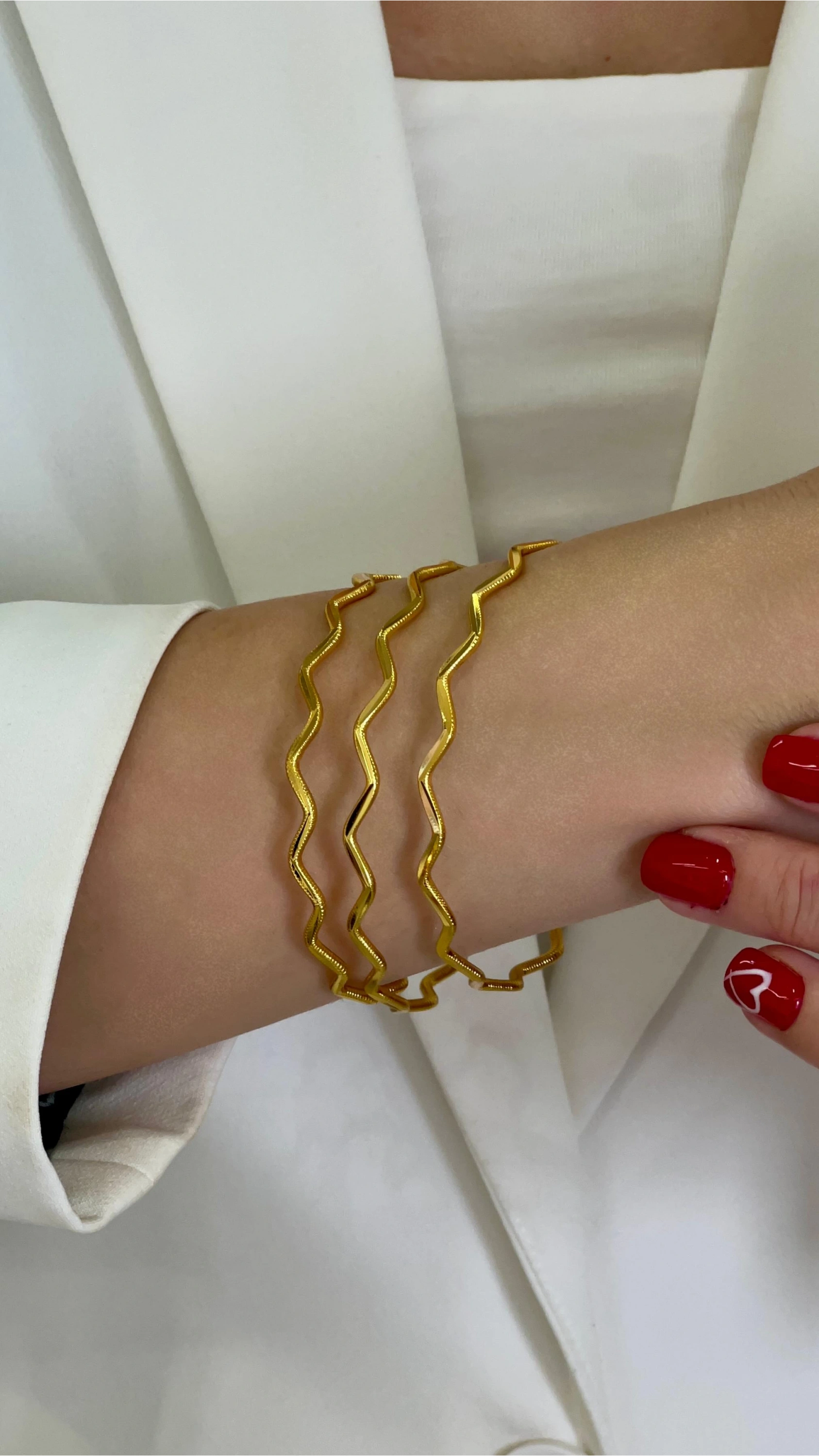 Üçlü Zikzak Kuyum Ajda Model Gold Altın Kaplama Bilezik