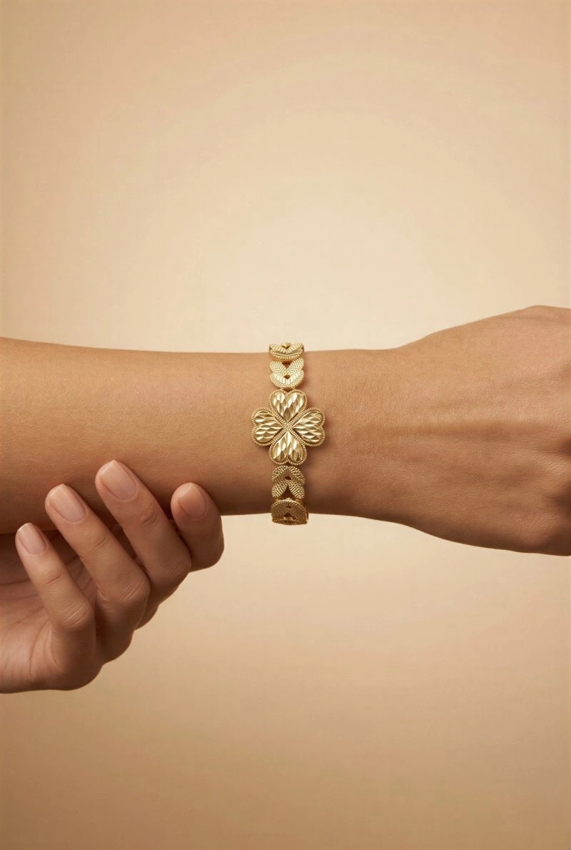 Başak Zincir Yonca Model Gold Altın Kaplama Bileklik