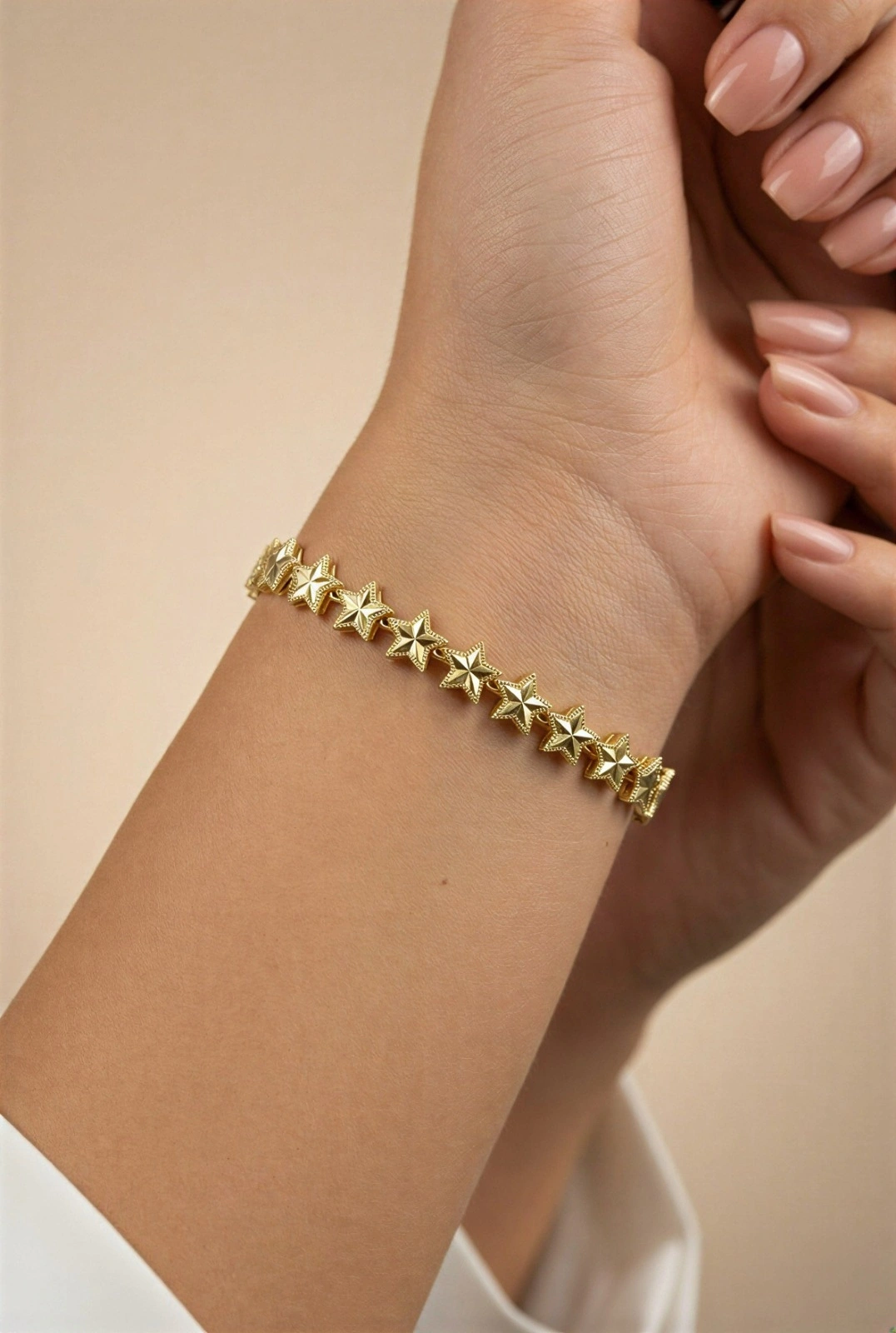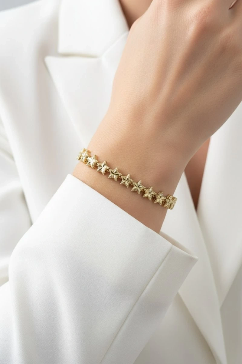 Baskılı Yıldız Model Gold Altın Kaplama Bileklik