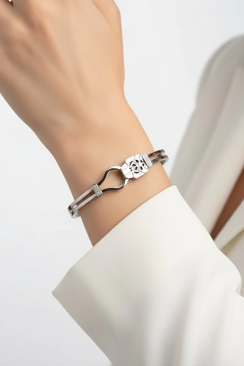 Bastet Model Beyaz Altın Kaplama Bileklik