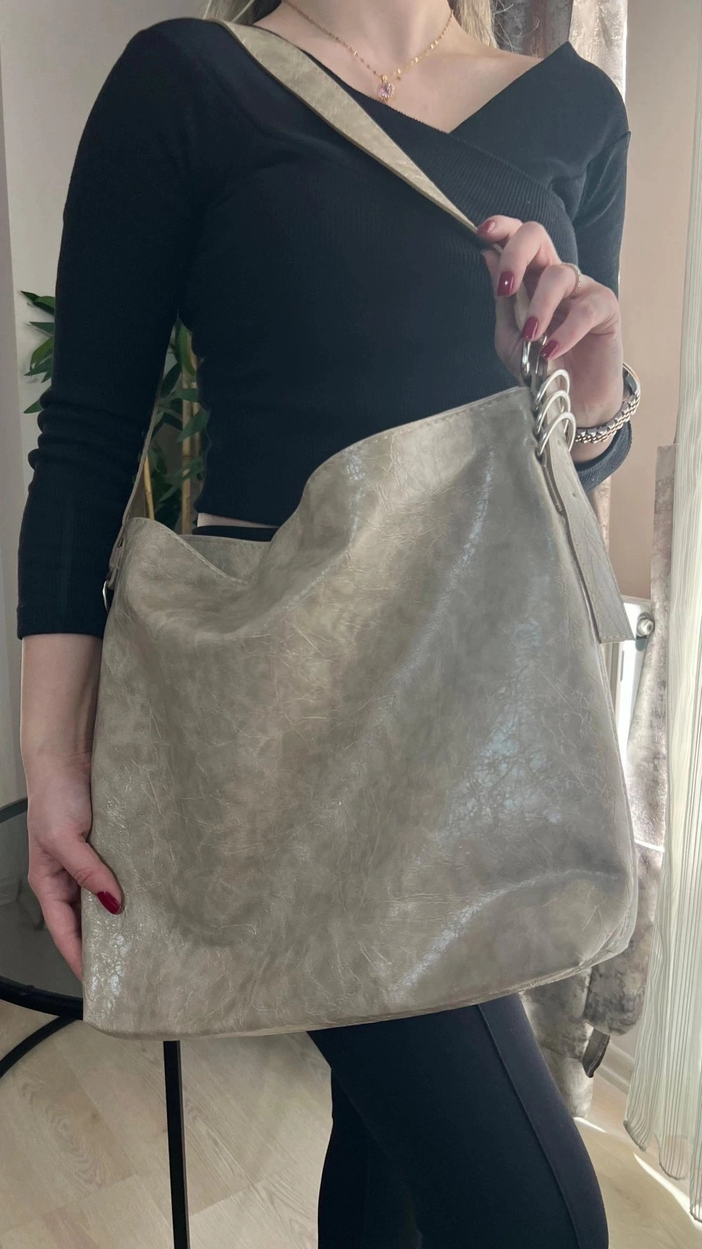 Bennie Model Bej Renk Deri Kol Çantası