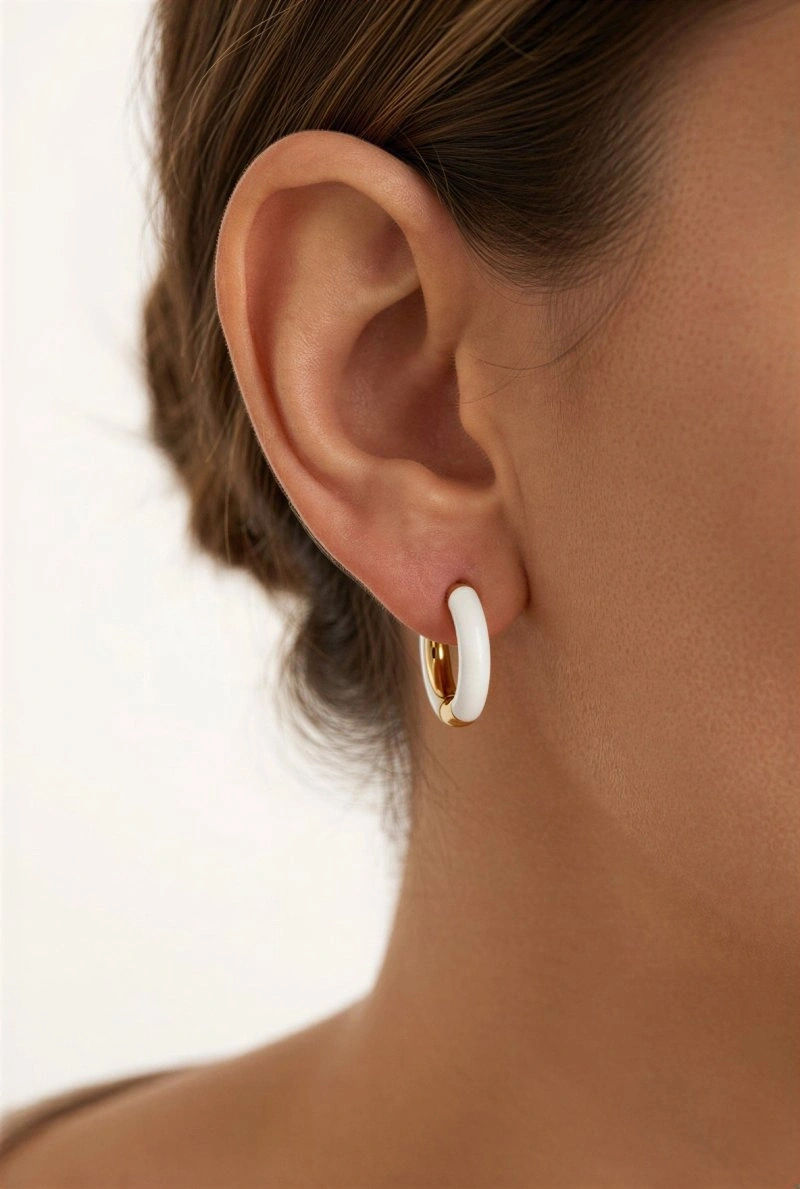 Beyaz Halka Model Gold Altın Kaplama Küpe