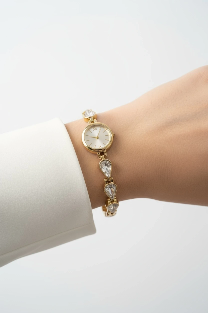 Gold Kordon Beyaz Kadran Damla Detay Kadın Kol Saati