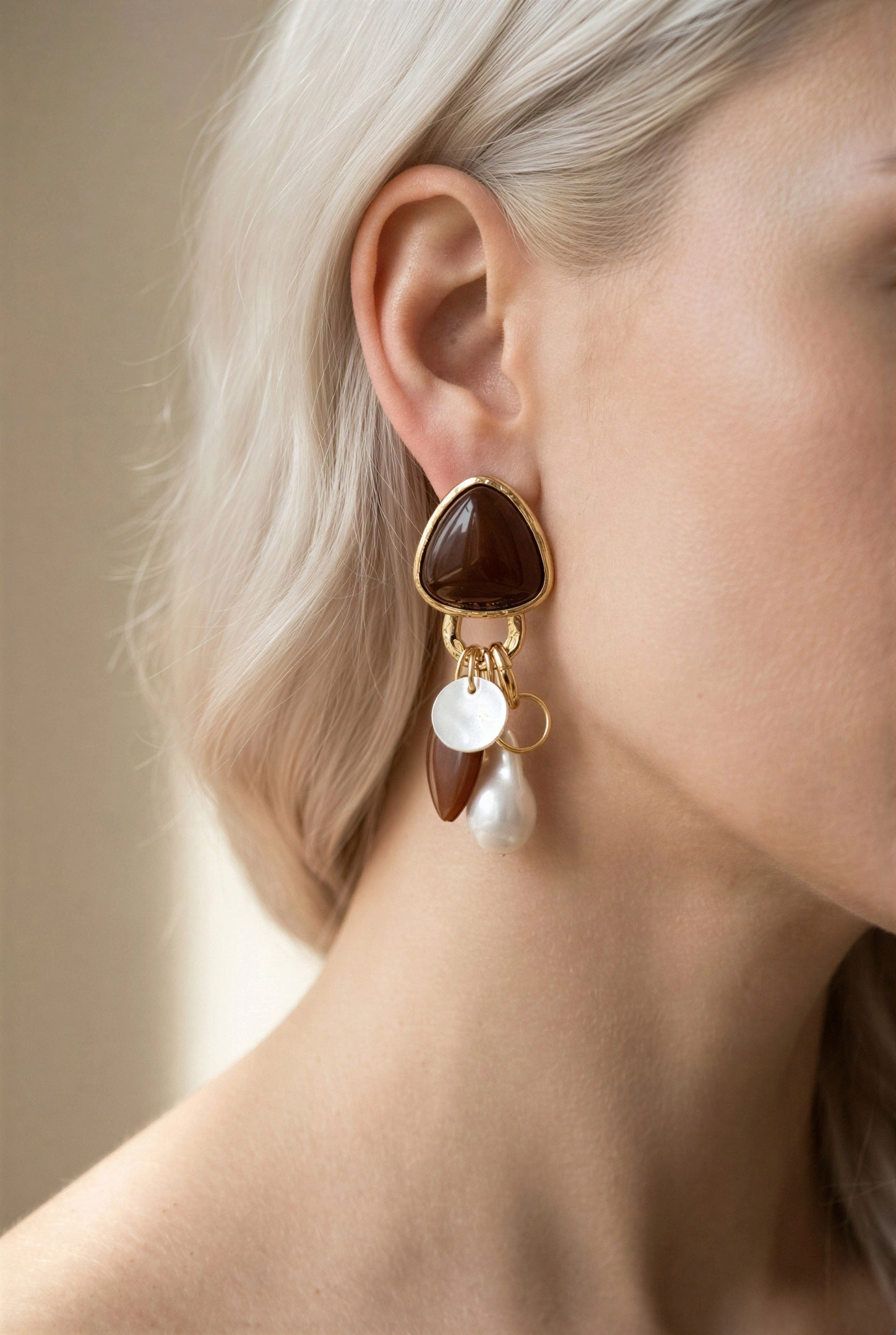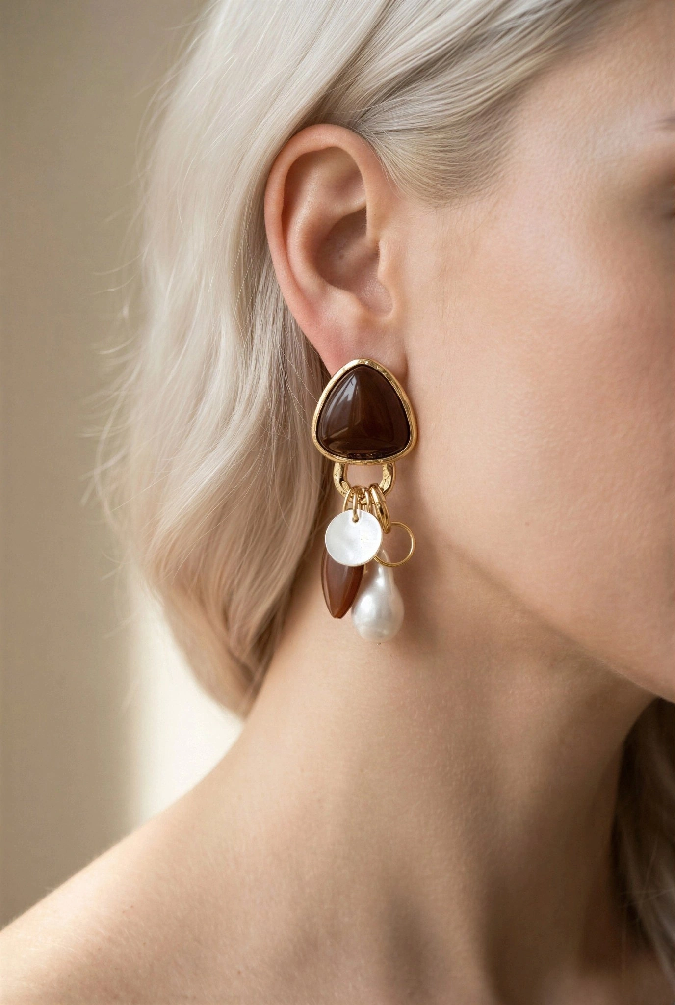 Kahverengi Üçgen Sarkıt Model Gold Altın Kaplama Küpe