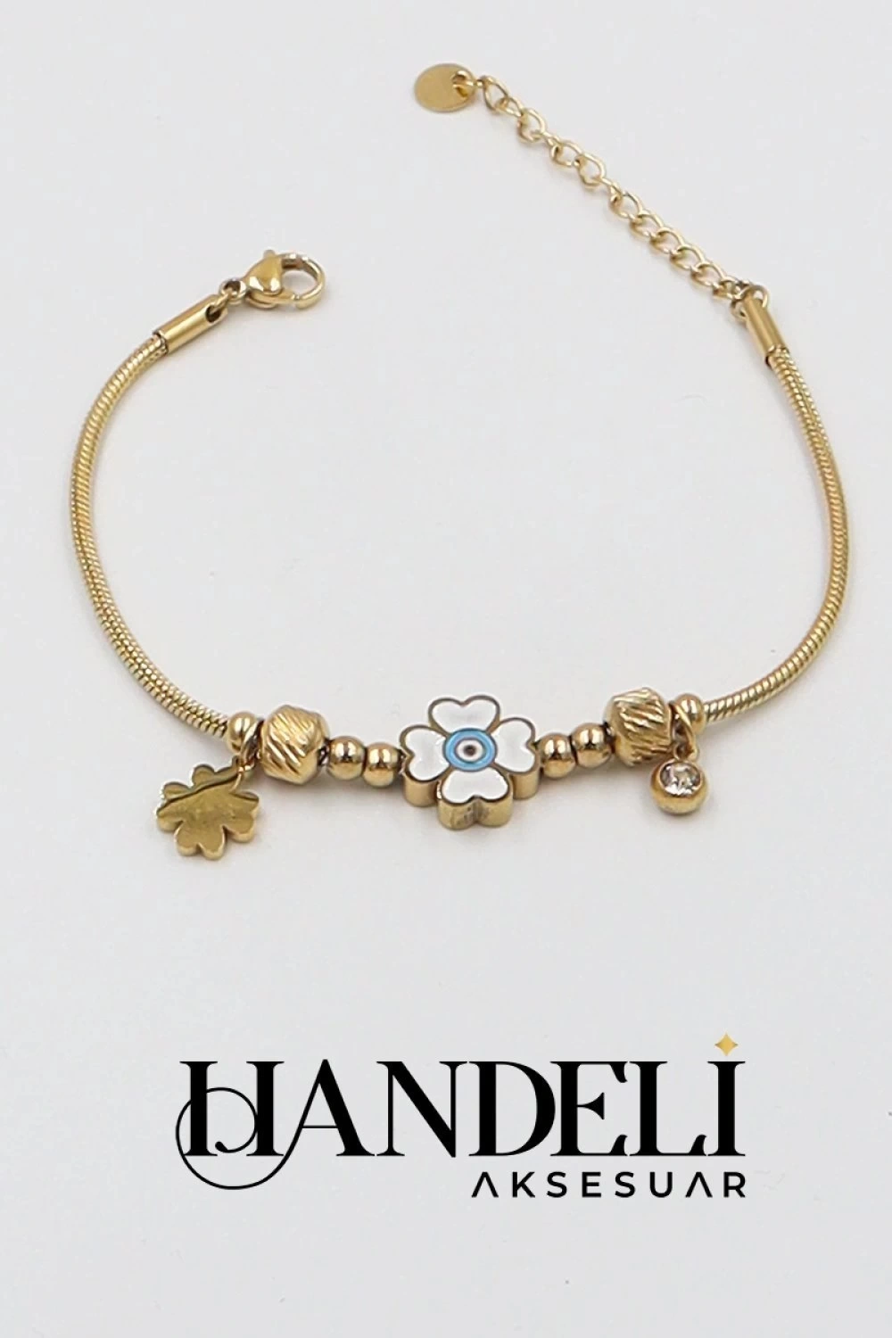 Beyaz Yonca Detay Gold Altın Kaplama Bileklik