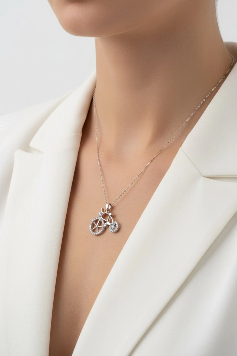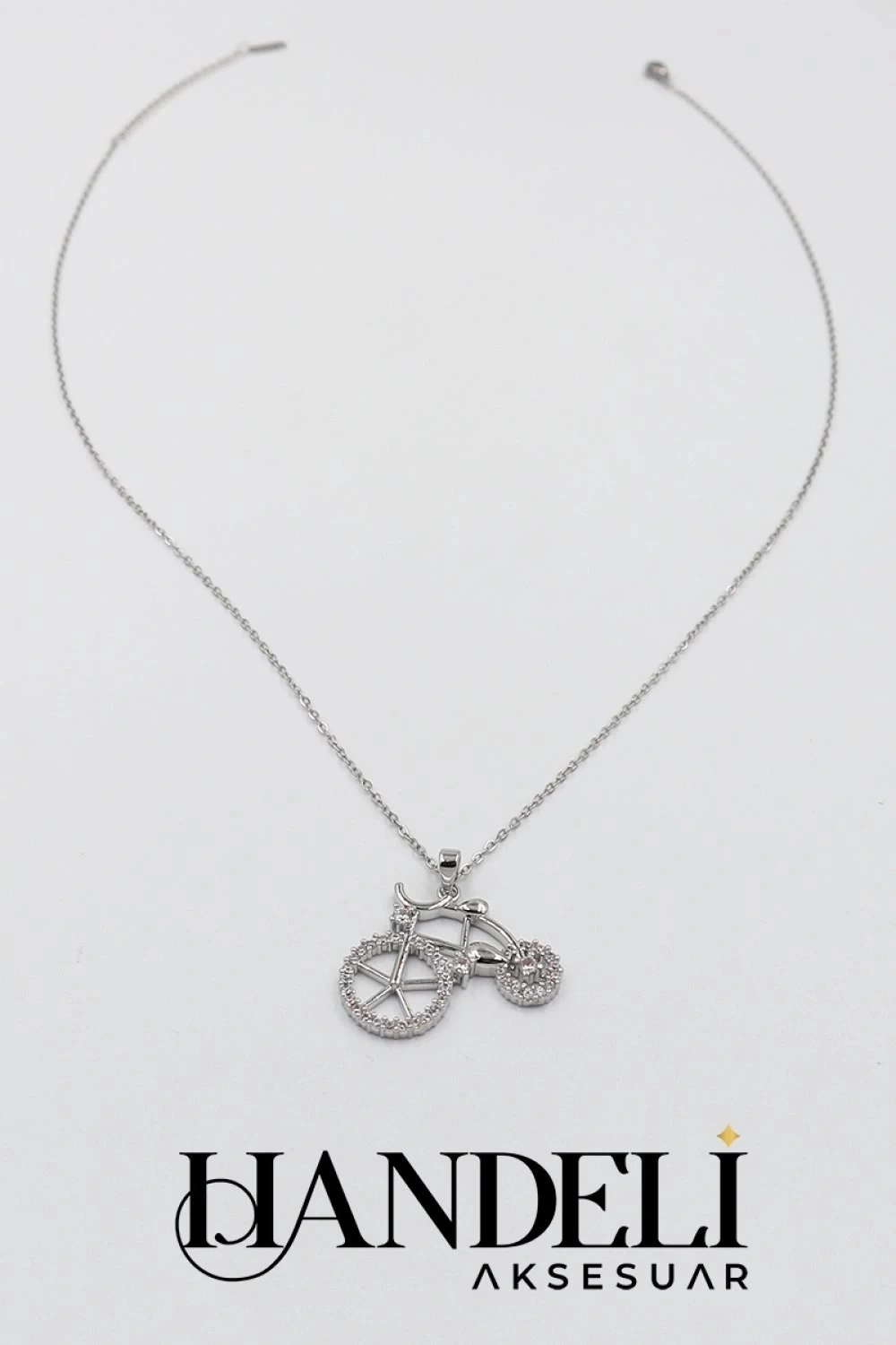 Bisiklet Model Beyaz Altın Kaplama Kolye