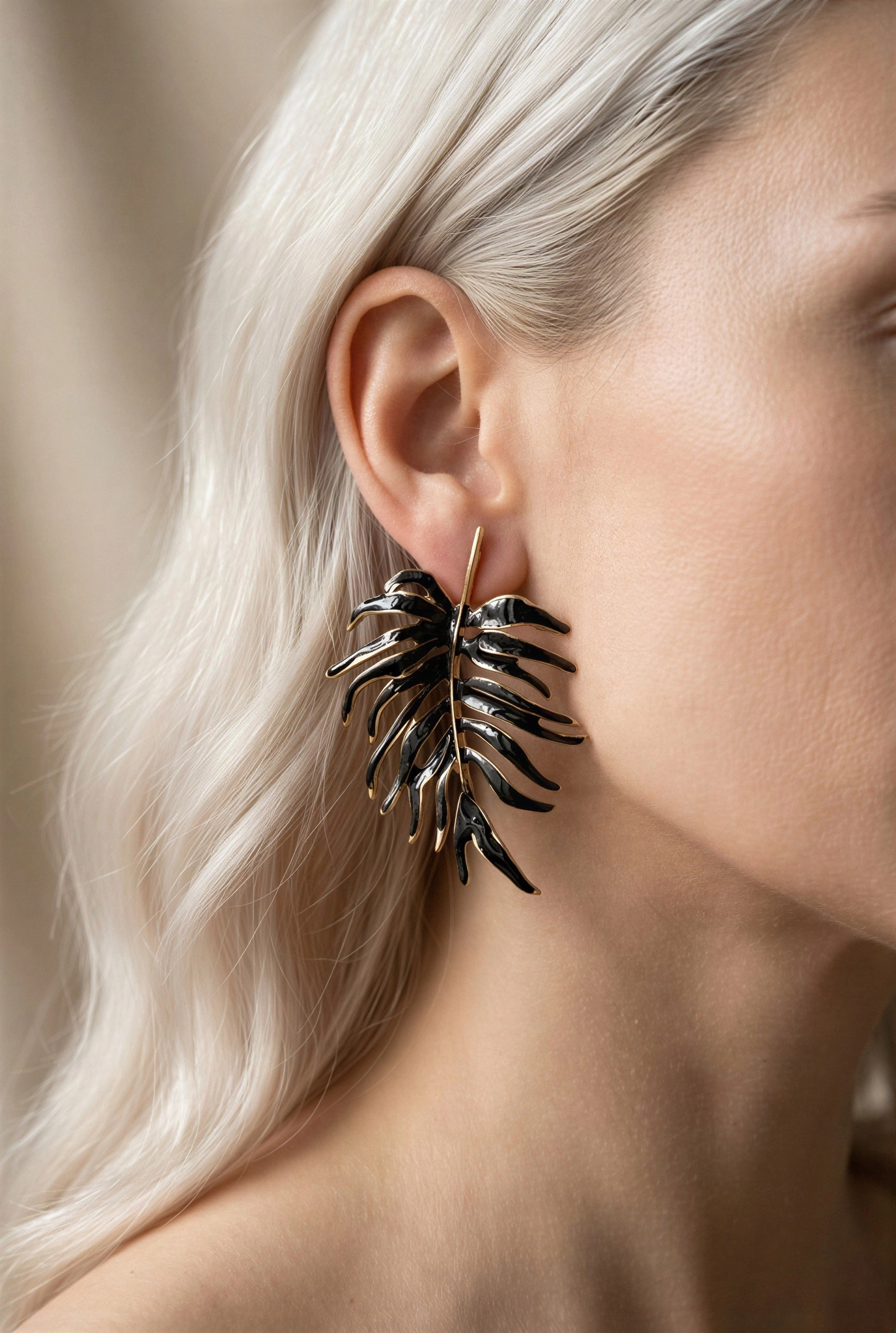Siyah Yaprak Model Gold Altın Kaplama Küpe