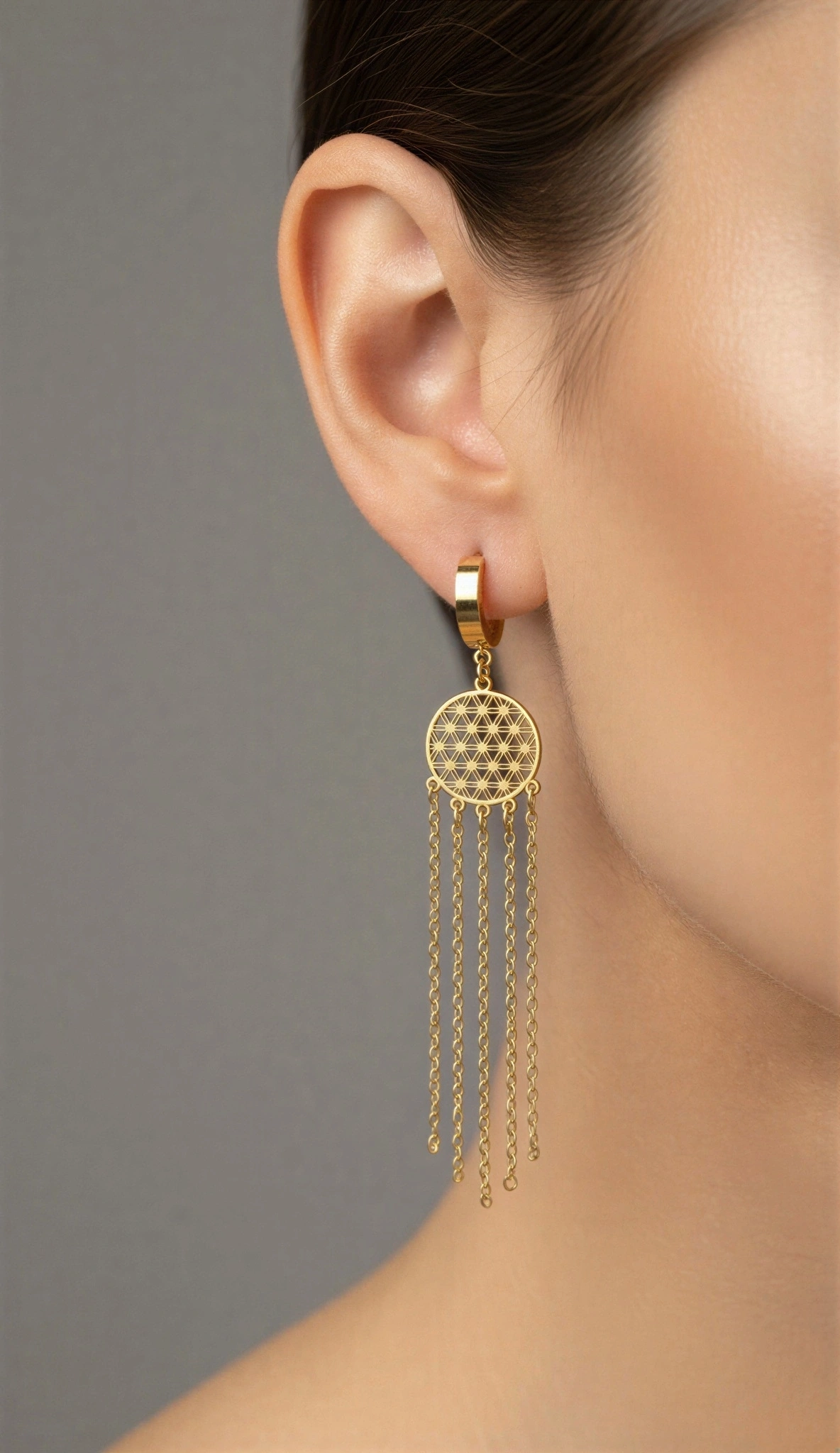 Sarkıt Yaşam Çiçeği Model Gold Altın Kaplama Çelik Küpe