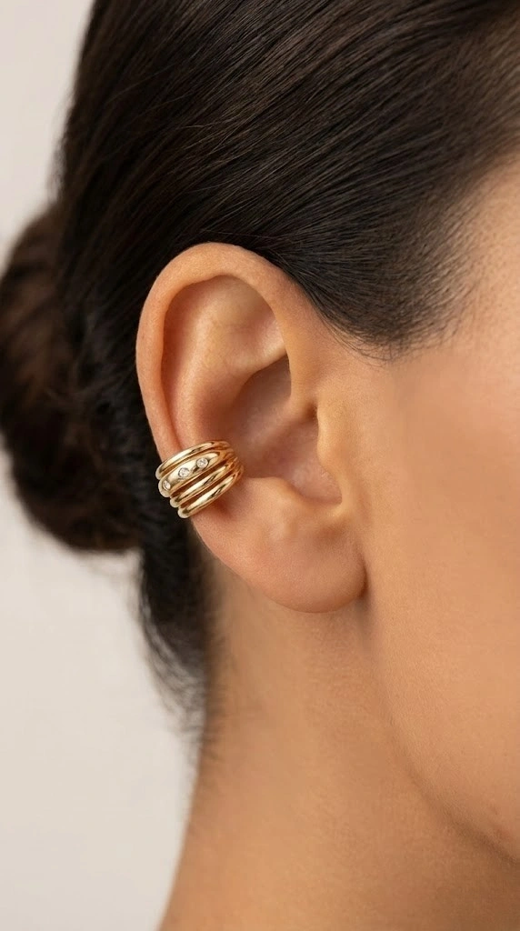 Dört Sıra Taş Detay Gold Altın Kaplama Ear Cuff