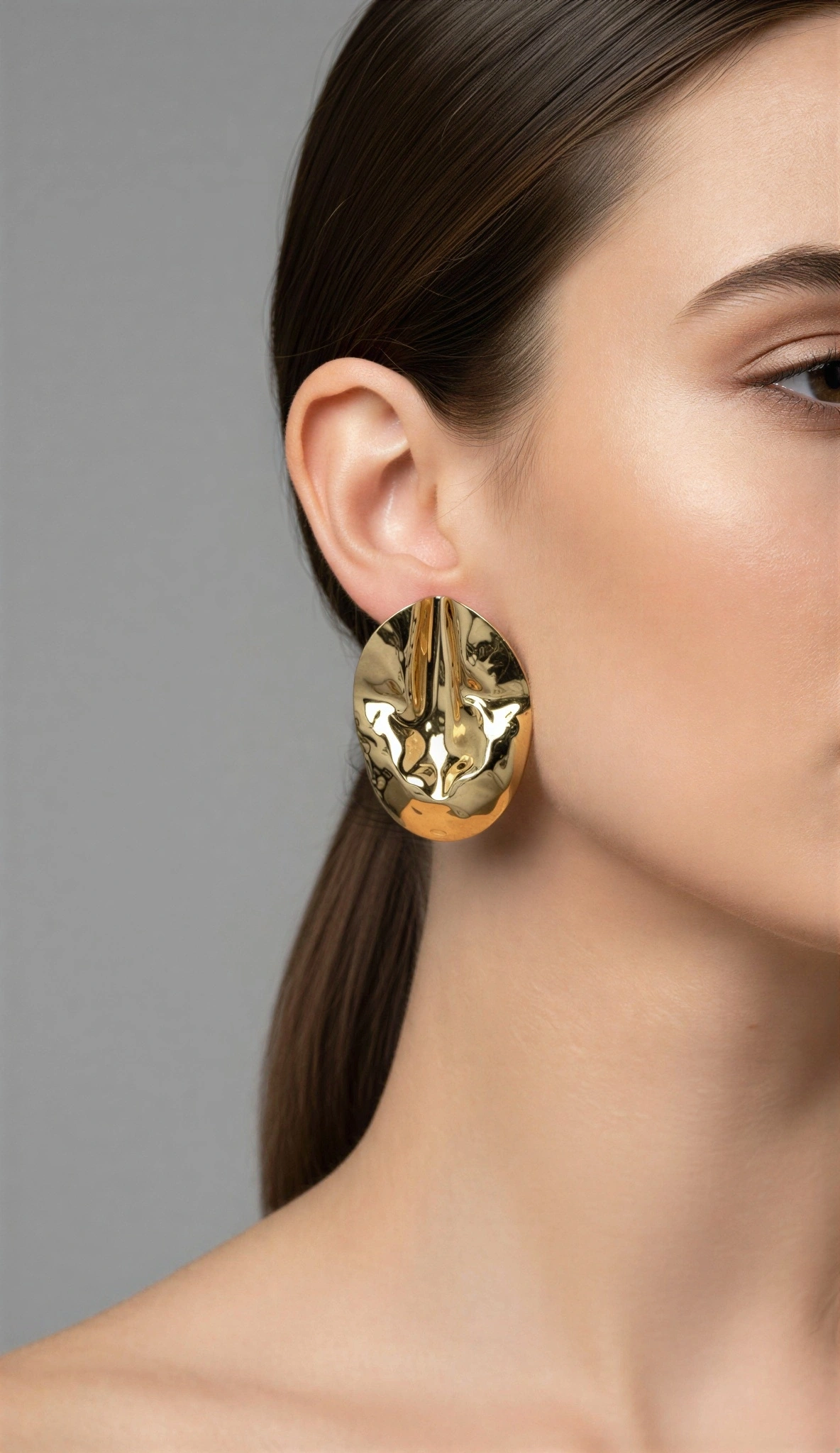 Desenli Halka Model Gold Altın Kaplama Küpe