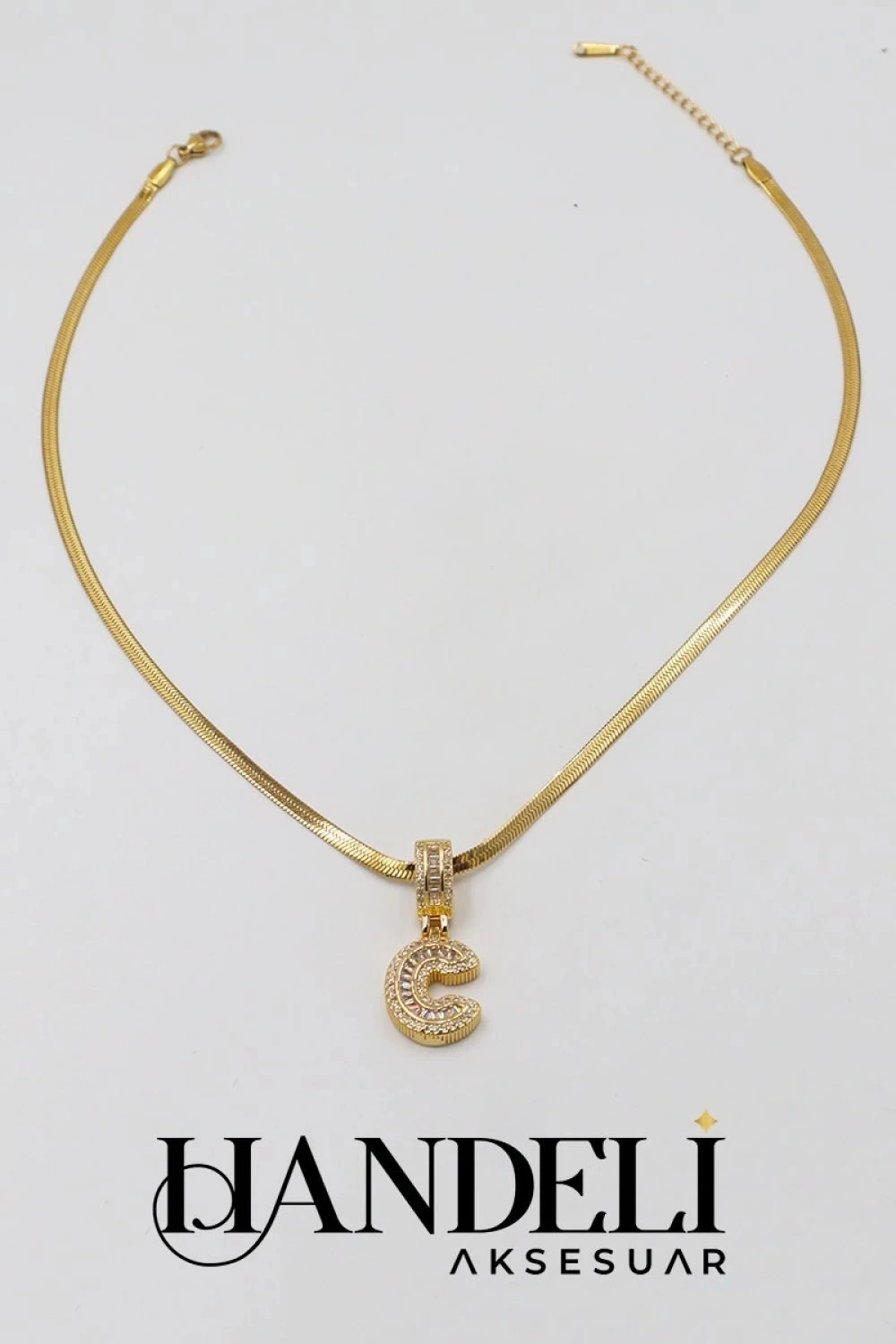 C Harf Taşlı İtalyan Gold Altın Kaplama Çelik Kolye