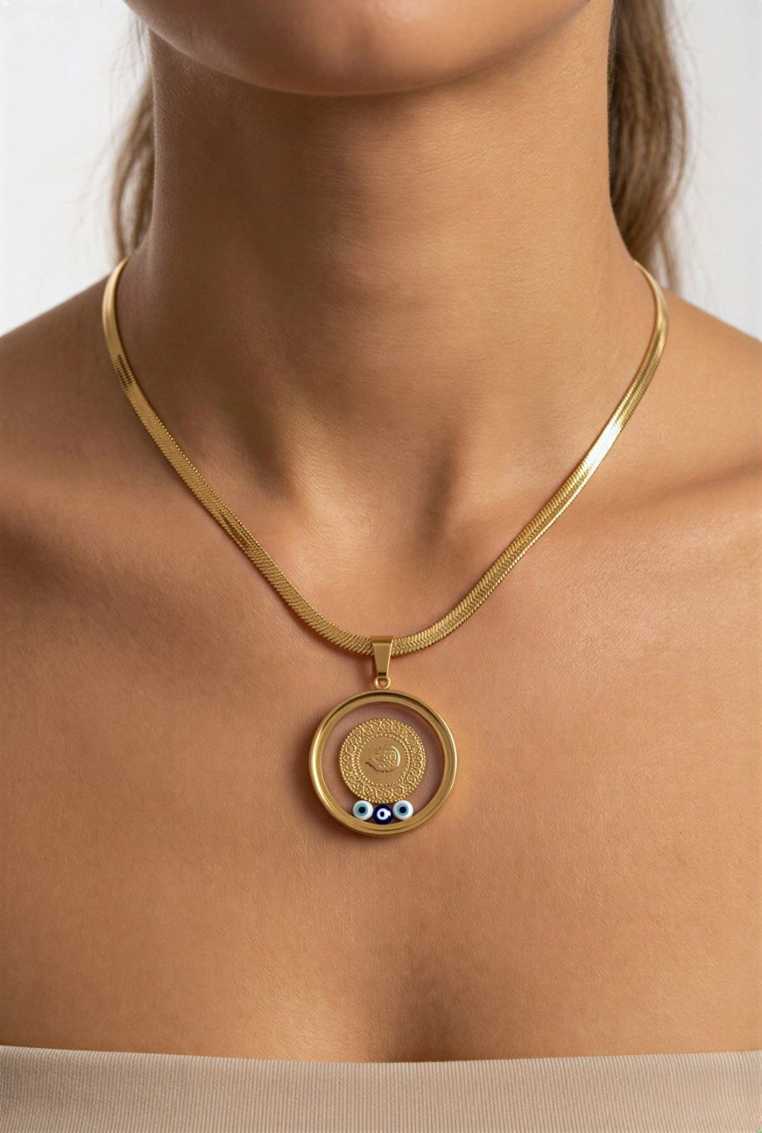 Cam Çerçeve İtalyan Zincir Osmanlı Gold Altın Kaplama Çelik Kolye
