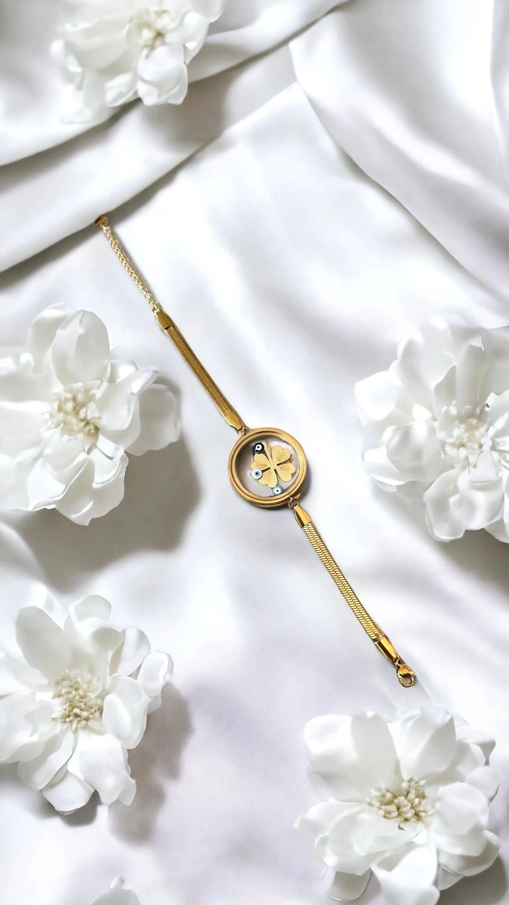 Cam Çerçeve İtalyan Zincir Yonca Gold Altın Kaplana Çelik Bileklik