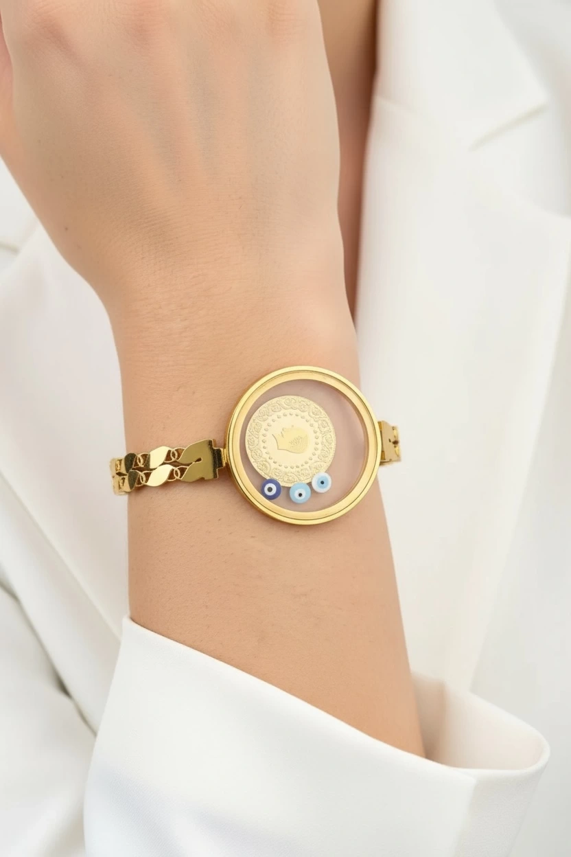 Cam Çerçeve Osmanlı Model Gold Altın Kaplama Bileklik